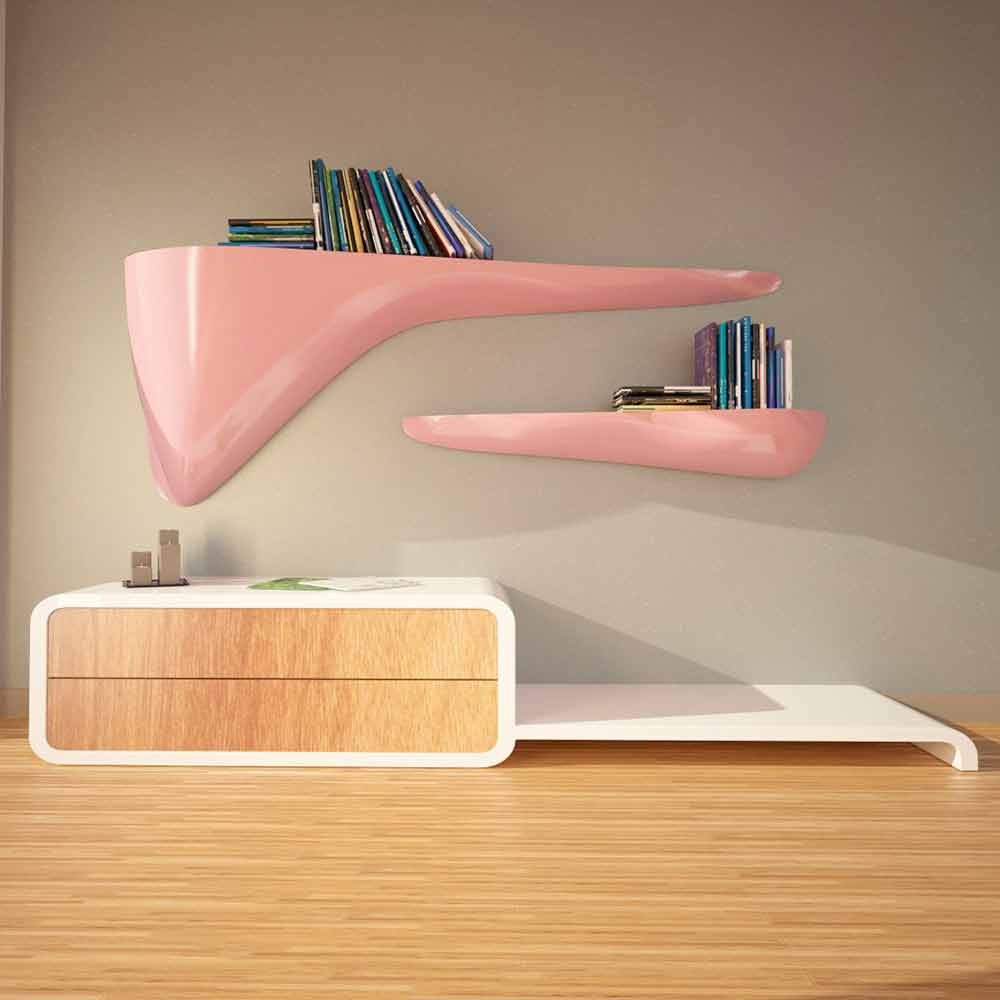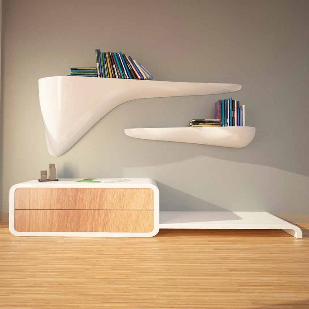Estante de diseño moderno hecho en Italia, Sizzano Sizzano es un estante con una forma particular hecho completamente de Solid Surface®; perfecto para decorar ambientes con originalidad y clase.