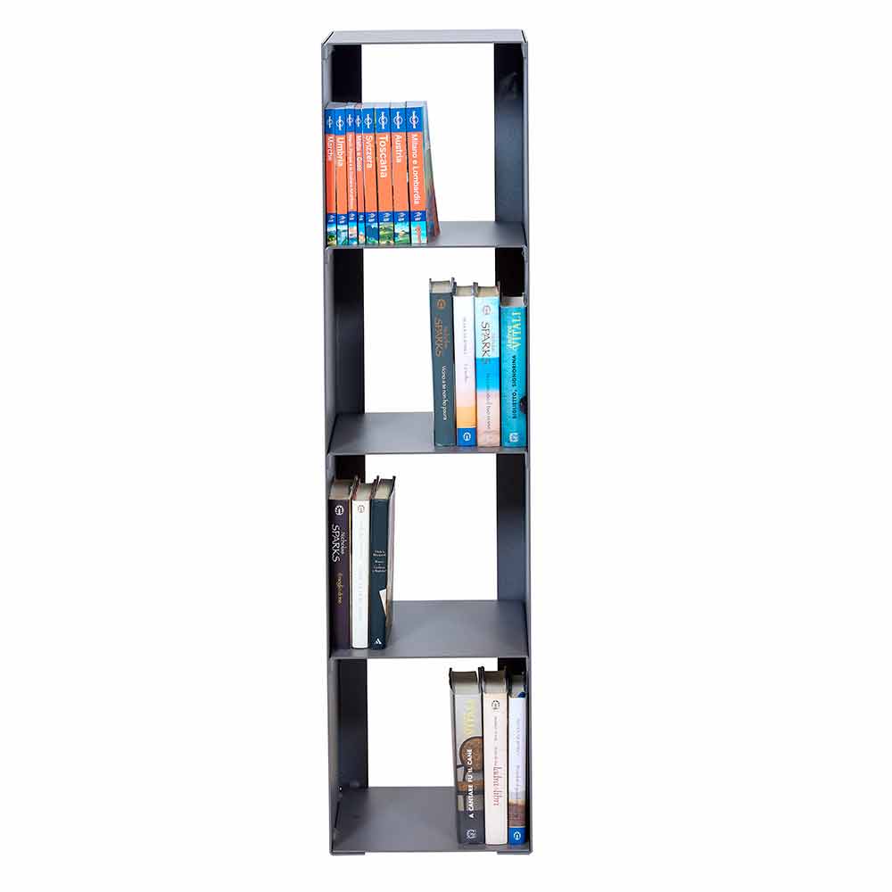 Librería de piso de estilo moderno con estantes de hierro pintado en negro, rojo, blanco o gris; hecho en Italia.
