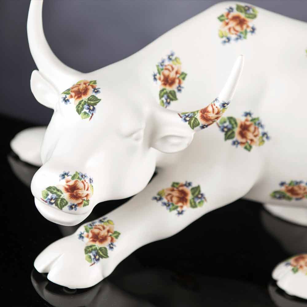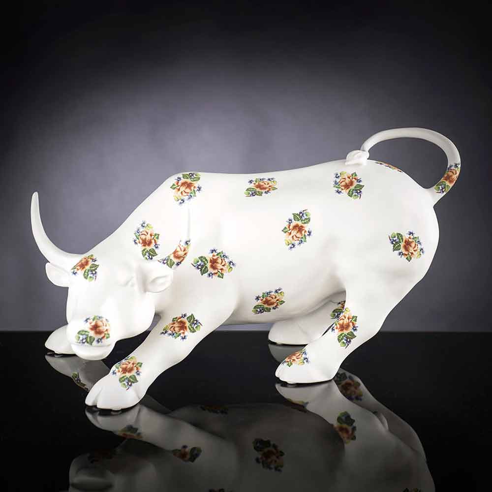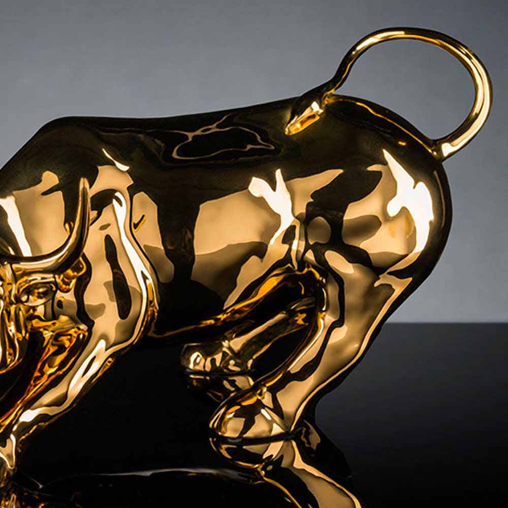 Estatua de cerámica coloreada en forma de toro hecha a mano en Italia, de alta calidad.