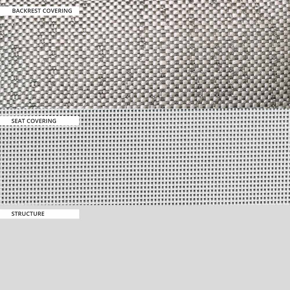 aluminio gunmetal, textilene negro y tejido savannah de zinc;