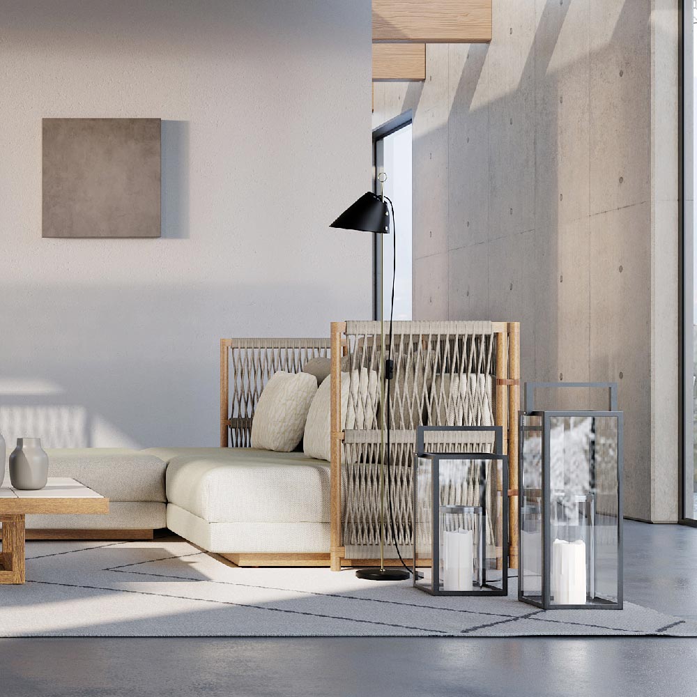 Farol de jardín íntegramente fabricado en Italia con estructura de aluminio pintado en acabado negro mate con un elegante efecto envejecido hecho a mano. Las paredes son de cristal transparente y el tirador circular colocado en el extremo es del mismo material que la estructura. Este farol está diseñado para iluminar y decorar espacios exteriores, creando fascinantes paisajes de luz y un ambiente cálido y acogedor. Gracias a sus elegantes líneas, es perfecto para completar la decoración de cualquier ambiente, inspirándose en el encantador y típico ambiente de las velas , reinterpretado en clave moderna.