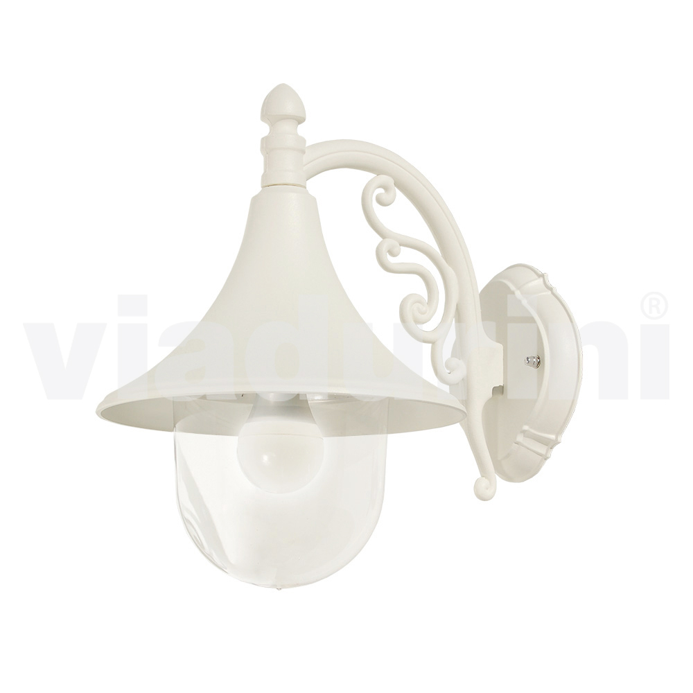 Farol de pared para jardín de aluminio blanco fabricado en Italia, Anusca Anusca es una refinada lámpara de exterior hecha a mano en Italia con materiales de alta calidad: estructura de aluminio inyectado y difusor de policarbonato disponible en las siguientes variantes: transparente (garantiza una difusión de luz óptima y siempre homogénea); ópalo y ahumado.