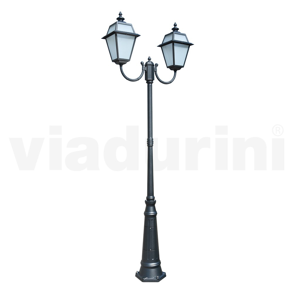 Farola vintage de 2 luces en aluminio y cristal Made in Italy.