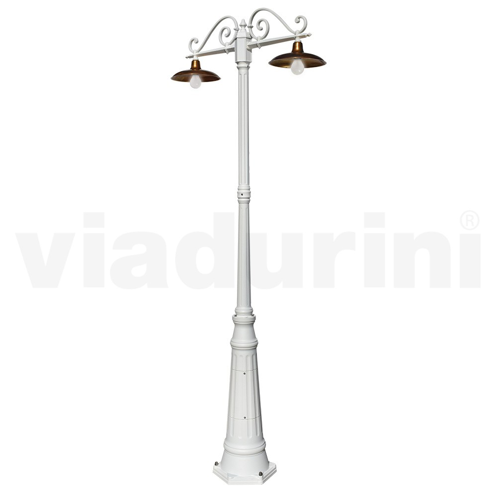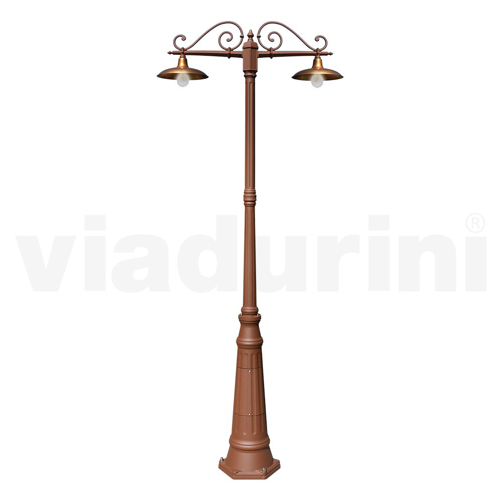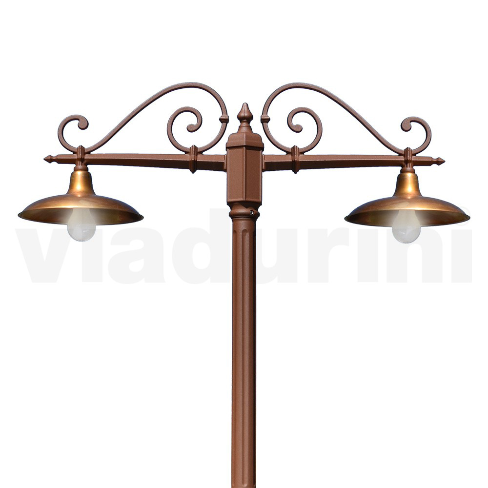 Farola de exterior vintage de 2 luces en aluminio y latón Made in Italy.