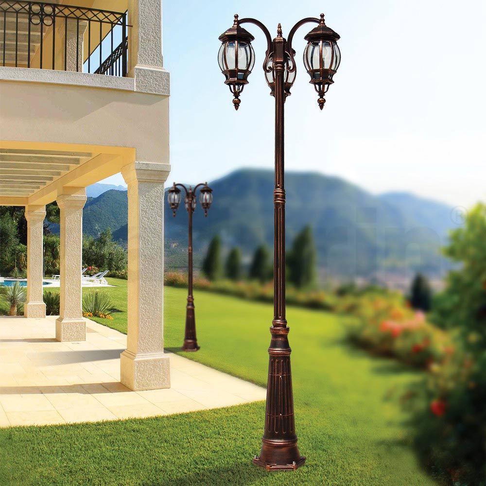 Farola de aluminio de 3 luces de estilo vintage con difusor de policarbonato Made in Italy.