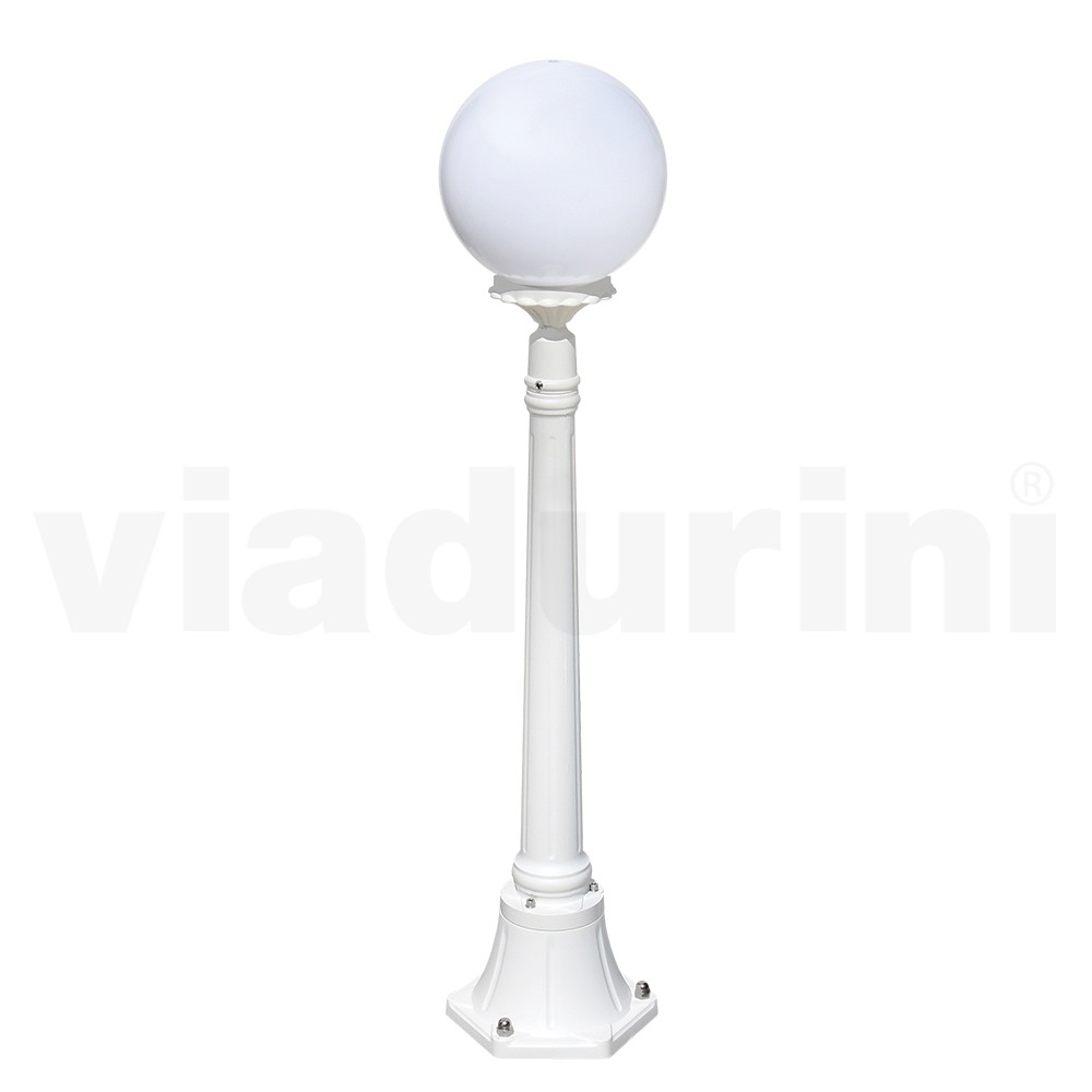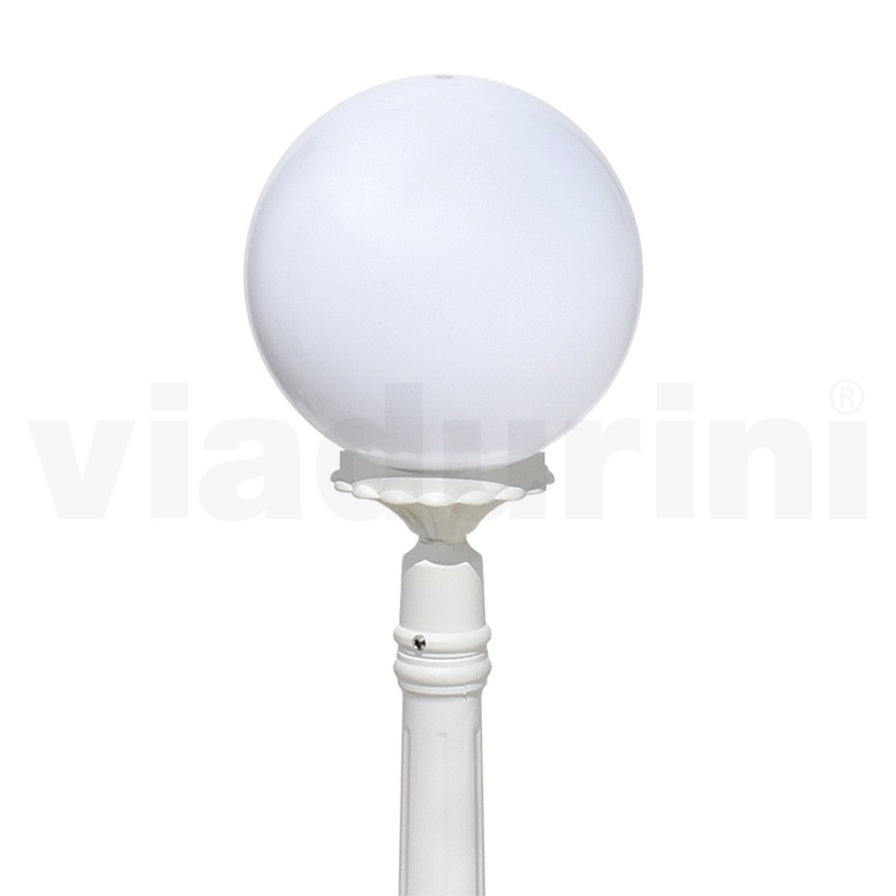 Lámpara de jardín realizada con estructura de aluminio inyectado y difusor de esfera acrílica opal , íntegramente Made in Italy.