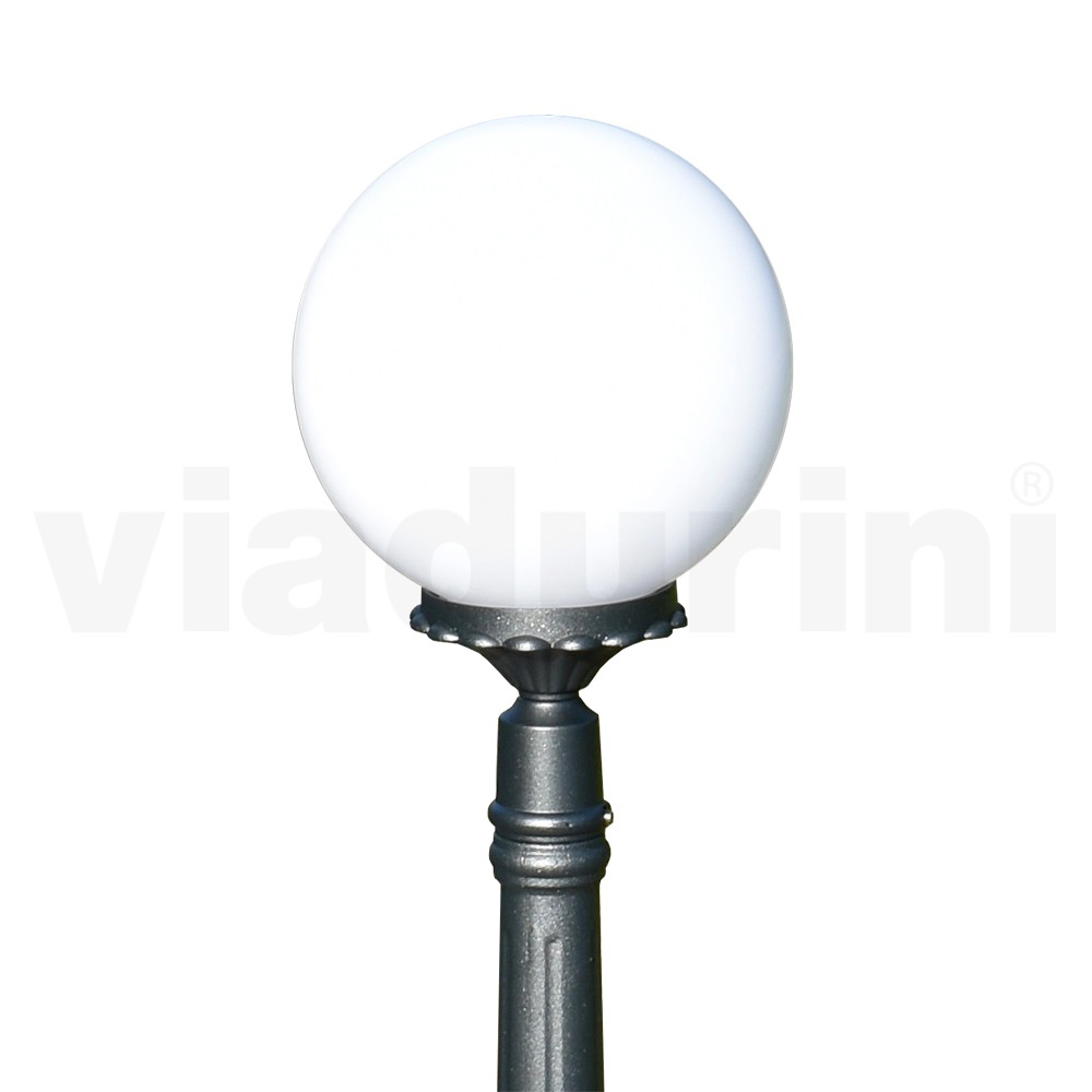 Lámpara de jardín realizada con estructura de aluminio inyectado acabado antracita y difusor de esfera acrílica opal , íntegramente Made in Italy.