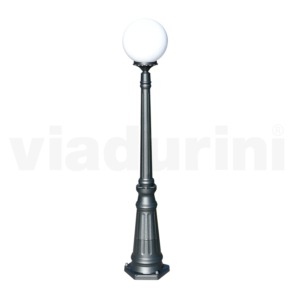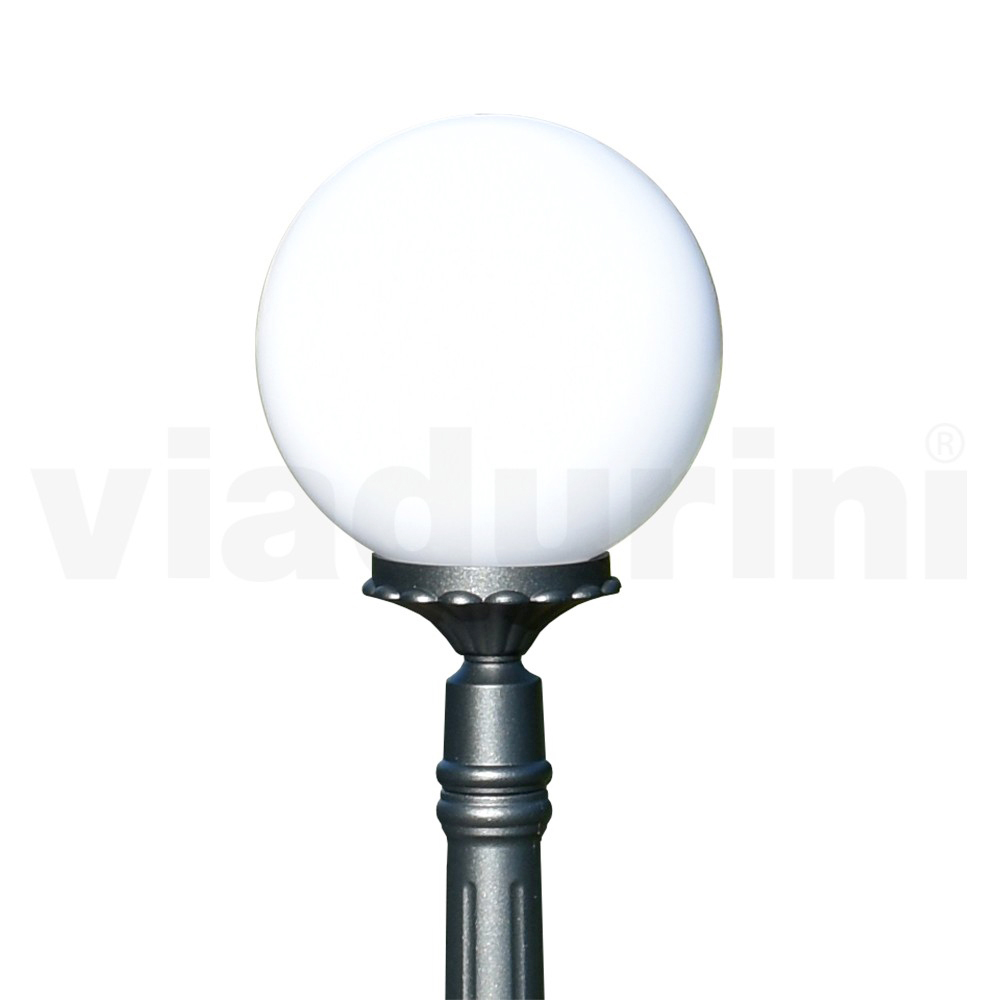 Lámpara de jardín realizada con estructura de aluminio inyectado acabado antracita y difusor de esfera acrílica opal , íntegramente Made in Italy.