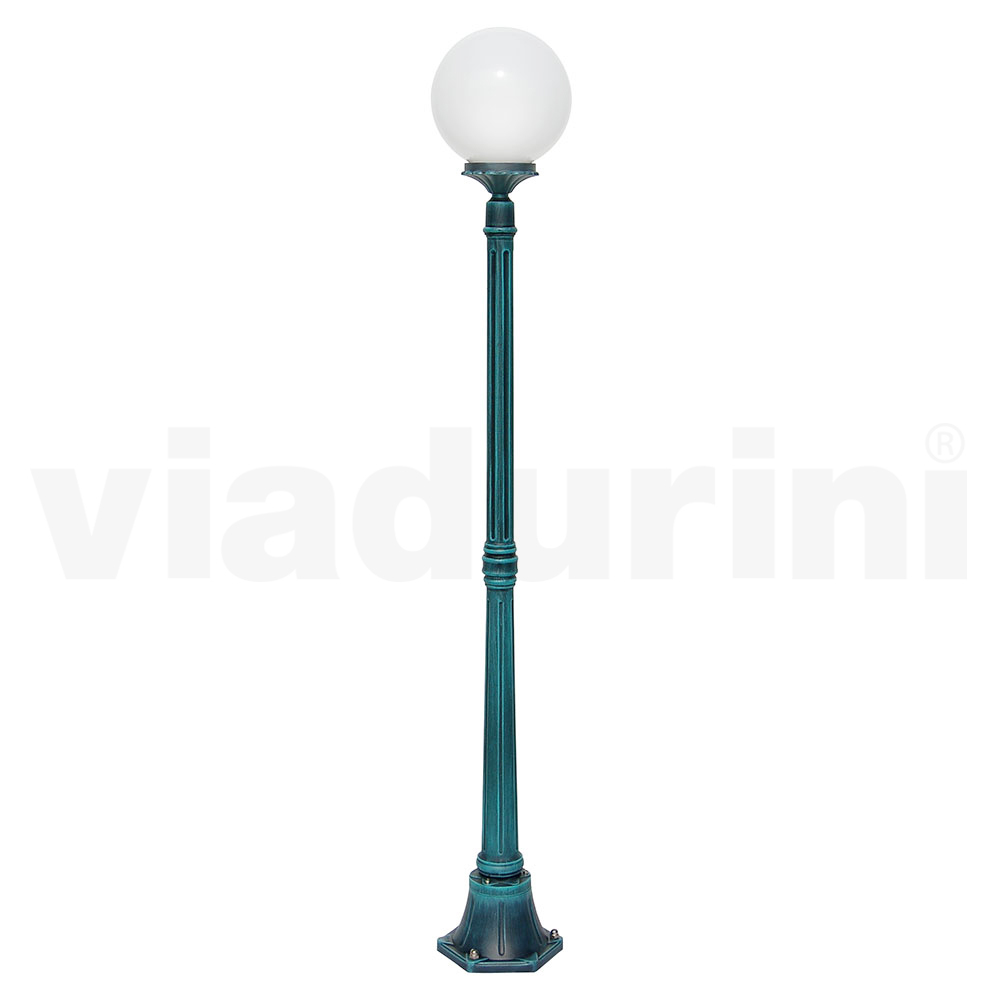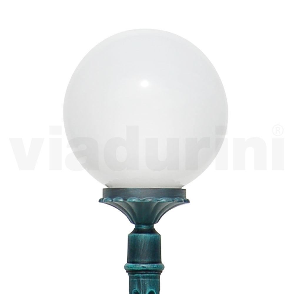 Lámpara de jardín realizada con estructura de aluminio inyectado y difusor de esfera acrílica opal , íntegramente Made in Italy.