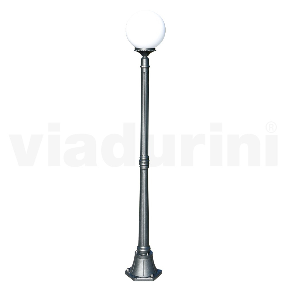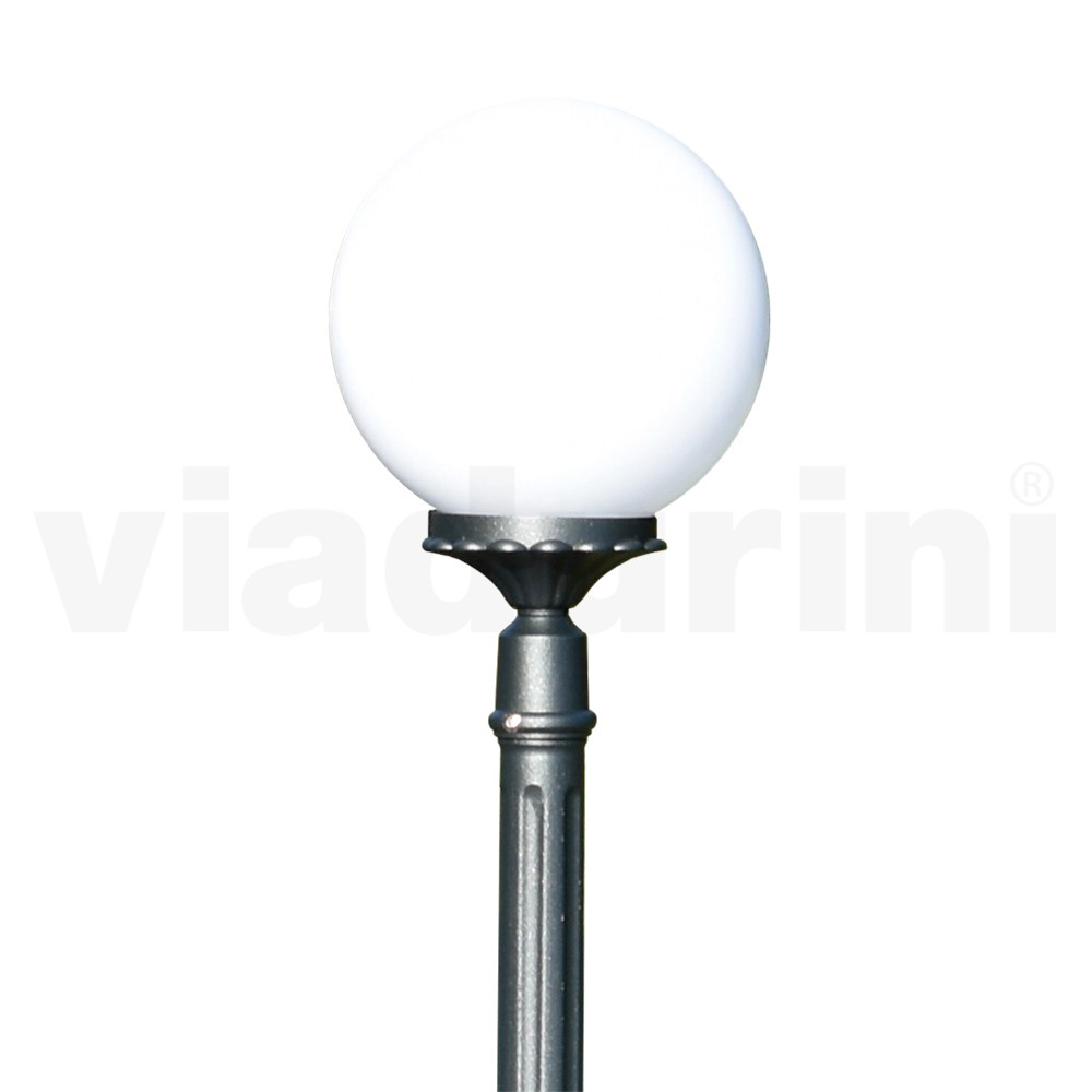 Lámpara de jardín realizada con estructura de aluminio inyectado acabado antracita y difusor de esfera acrílica opal , íntegramente Made in Italy.