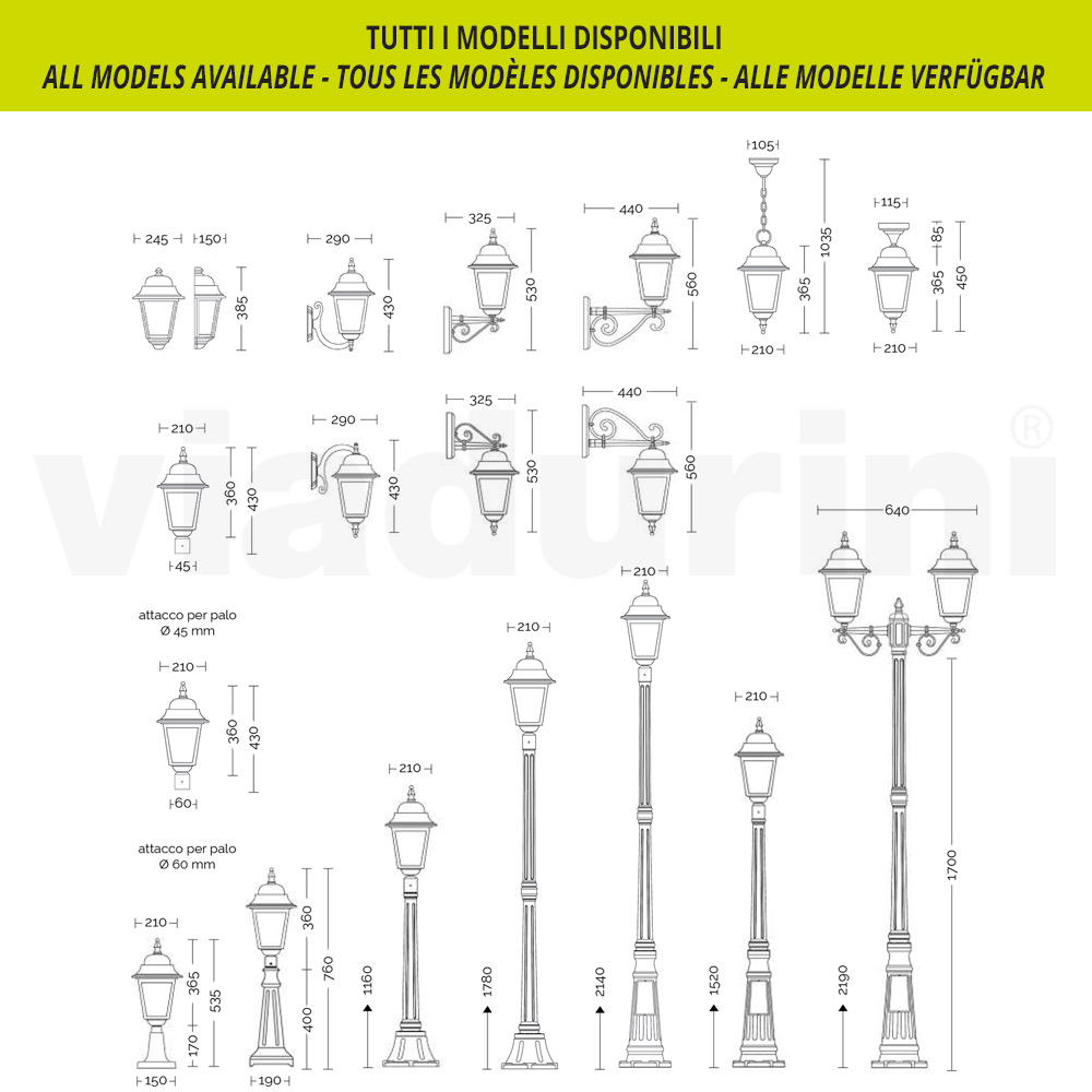 Lámpara de jardín realizada con estructura de aluminio inyectado acabado antracita y difusor de cristal arenado , íntegramente Made in Italy.