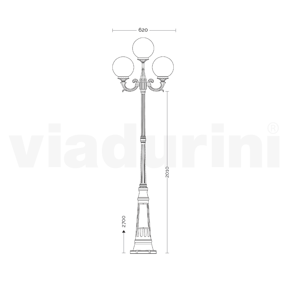 Farola de exterior en fundición de aluminio con 4 difusores acrílicos