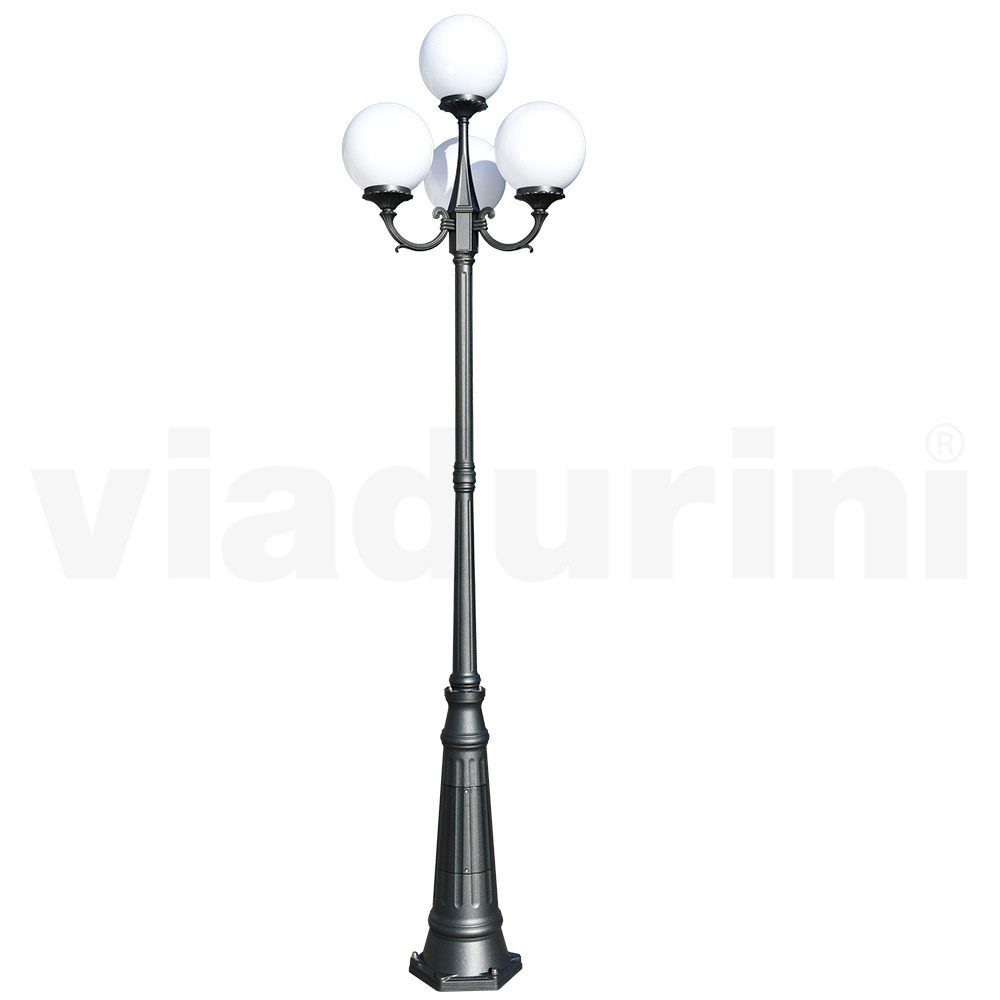 Farola de exterior en fundición de aluminio con 4 difusores acrílicos