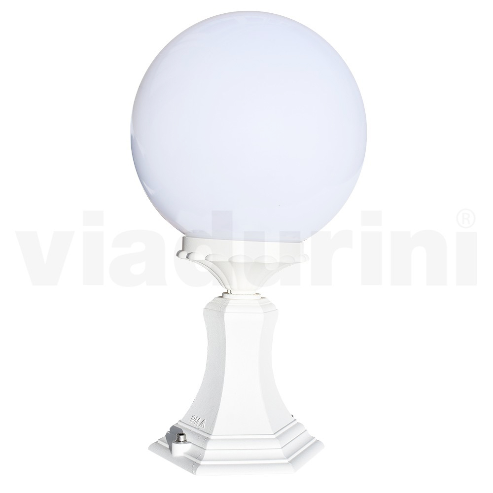 Lámpara de jardín realizada con estructura de aluminio inyectado y difusor de esfera acrílica opal , íntegramente Made in Italy.