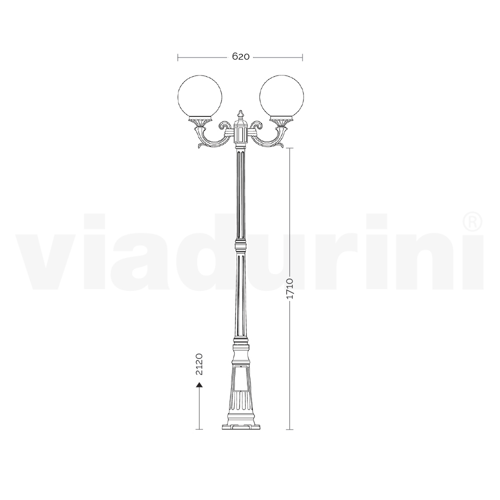 Lámpara de jardín realizada con estructura de aluminio inyectado y difusor de esfera acrílica opal , íntegramente Made in Italy.