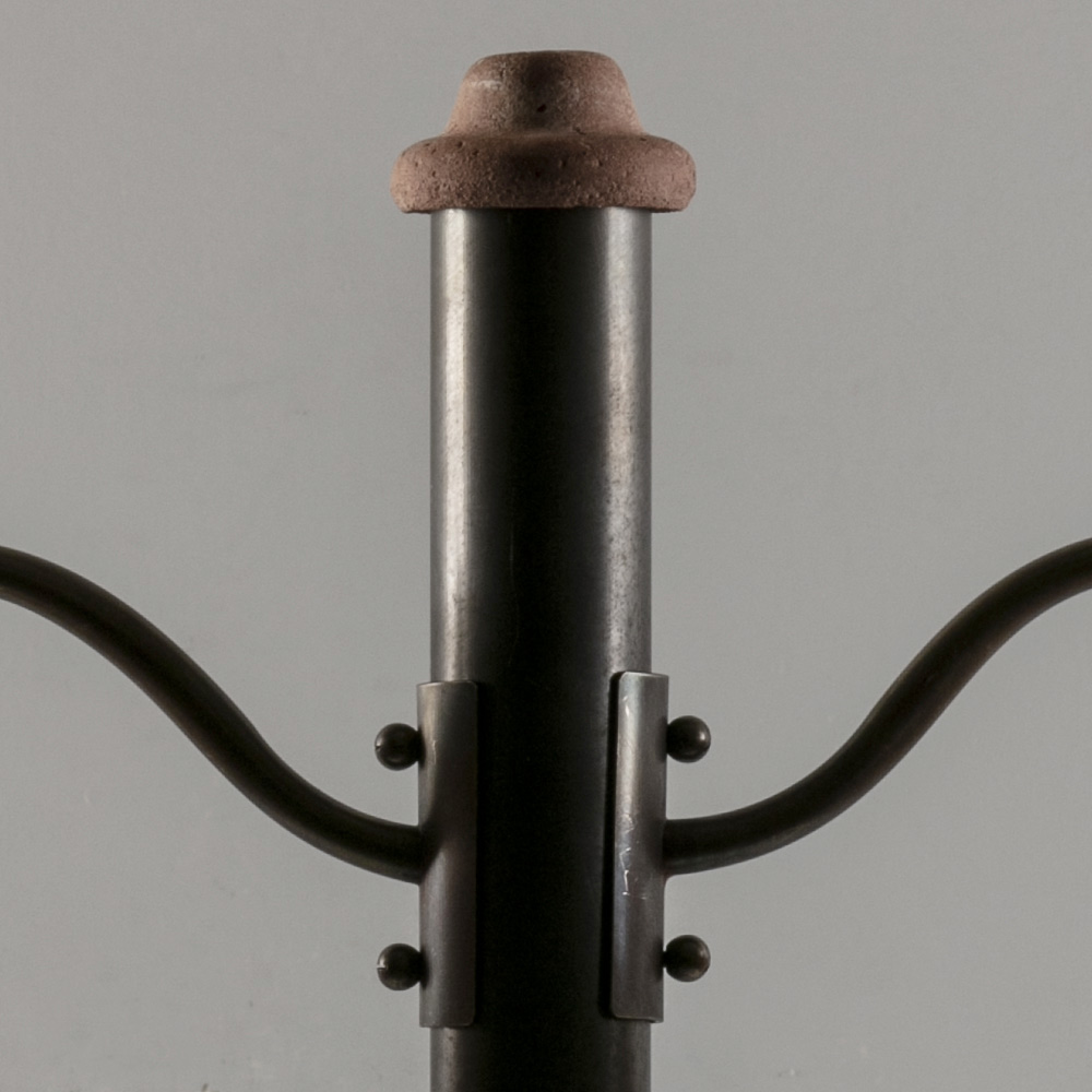 Hecho a mano en Italia , este accesorio para espacios al aire libre se caracteriza por el encuentro entre