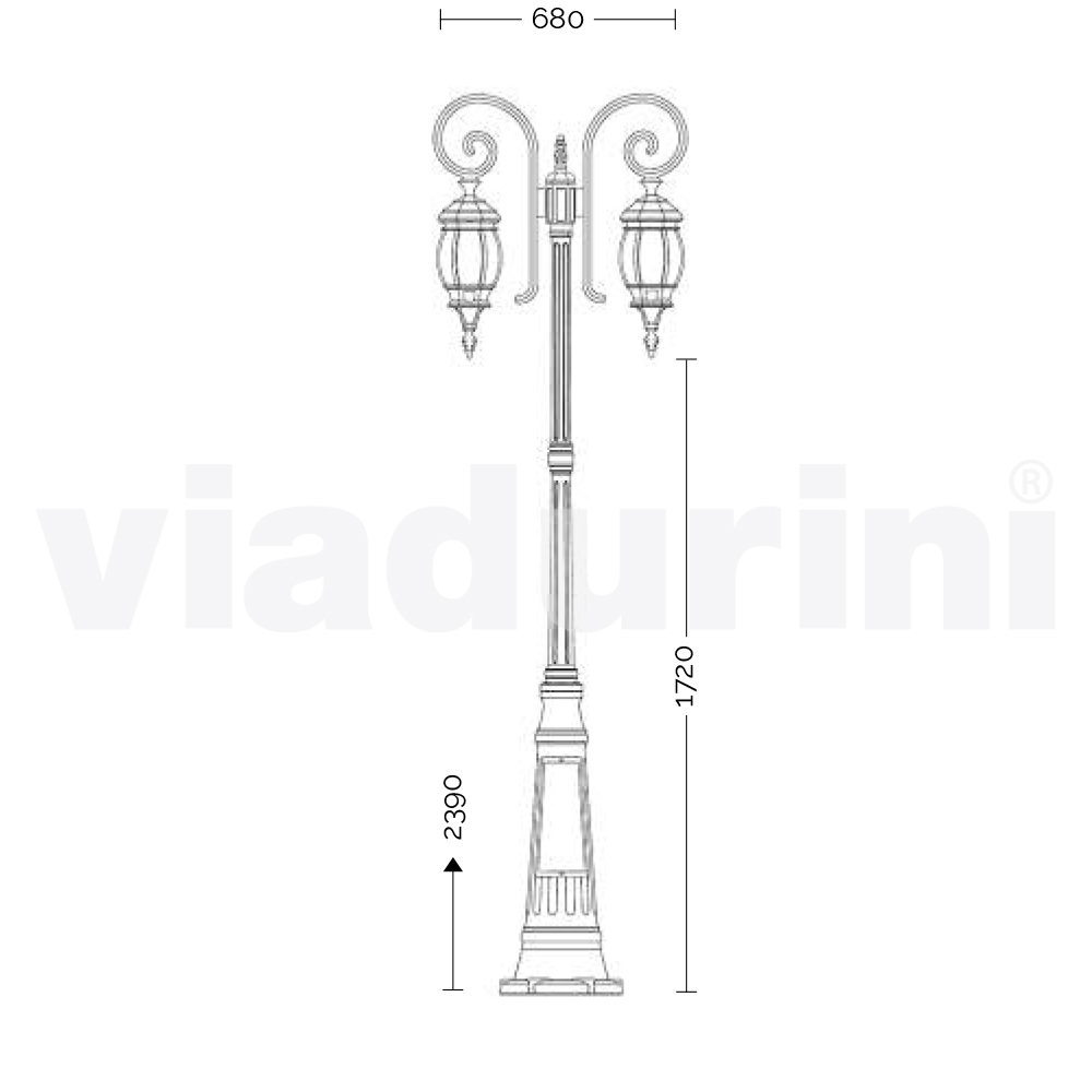 Lámpara de jardín con luces de aluminio fabricada en Italia, Anika Anika es una farola de exterior de dos luces hecha a mano en Italia con materiales de alta calidad: estructura de aluminio inyectado y difusor de policarbonato transparente (garantiza una difusión de la luz óptima y siempre homogénea).