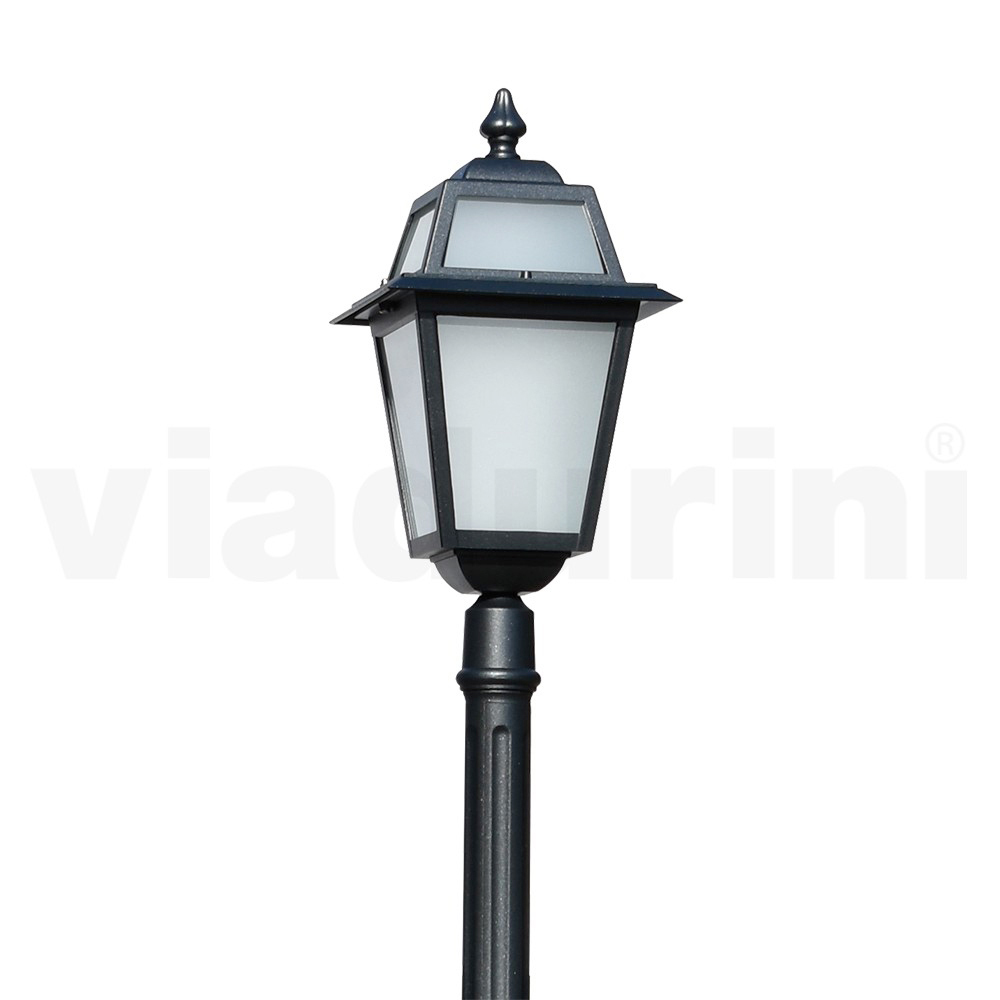 Lámpara de jardín realizada con estructura de aluminio inyectado acabado antracita y difusor de cristal arenado , íntegramente Made in Italy.