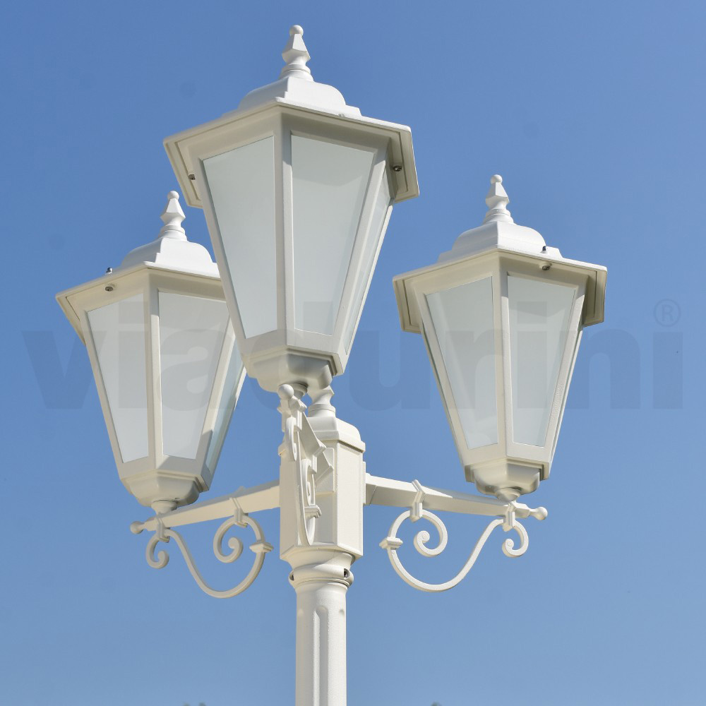 Farola de 3 luces de aluminio con difusor de cristal Made in Italy, estilo vintage.