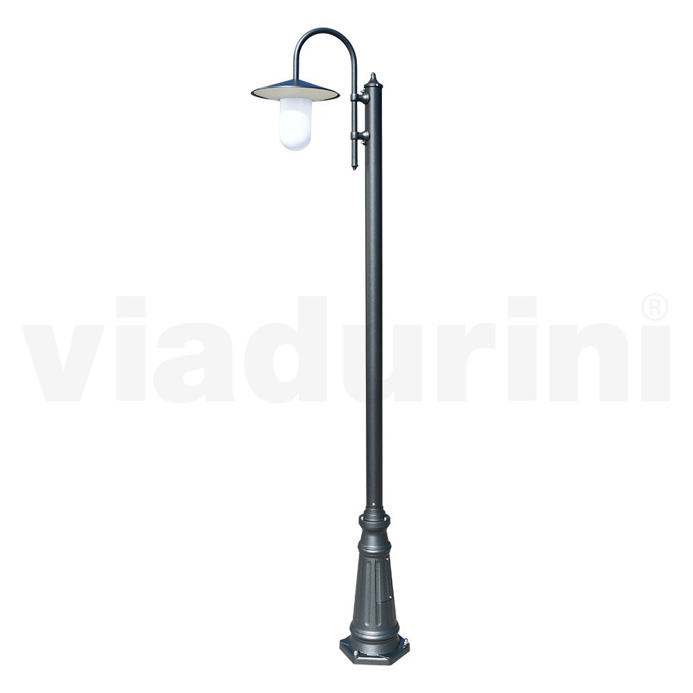 Farola de exterior fabricada en Italia en fundición a presión de aluminio acabado gris antracita con difusor de policarbonato mediante producción 100% Made in Italy . Completo con tornillos de acero inoxidable. De un diseño simple y elegante surge un producto con una personalidad fuerte e imponente, ideal para amueblar cuidadosamente espacios exteriores como jardines, avenidas y paseos para un resultado elegante y funcional .