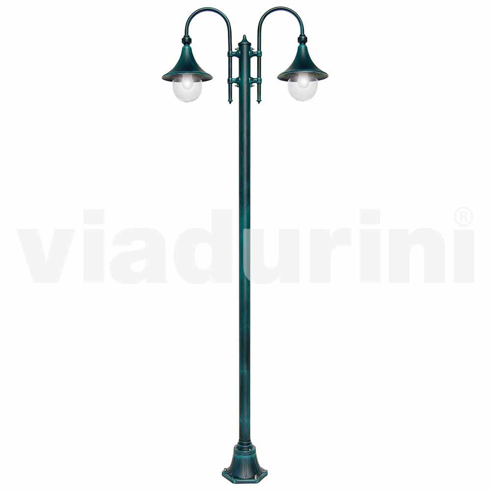 Farola de exterior de aluminio de dos luces fabricada en Italia, Anusca Anusca es una farola de exterior lineal y sencilla de dos luces hecha a mano en Italia con materiales de alta calidad: estructura de aluminio inyectado y difusor de policarbonato disponible en las siguientes variantes: transparente (garantiza una difusión de luz óptima y siempre homogénea); ópalo y ahumado.