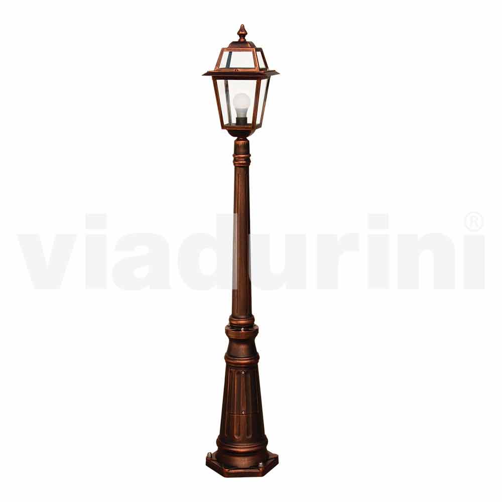 Farola de exterior con una luz en aluminio fabricada en Italia, Kristel Kristel es una lámpara de jardín de una sola luz hecha a mano en Italia con material de alta calidad: estructura de aluminio inyectado y difusor de cristal disponible: transparente o arenado.
