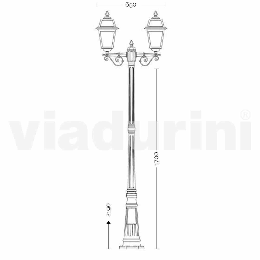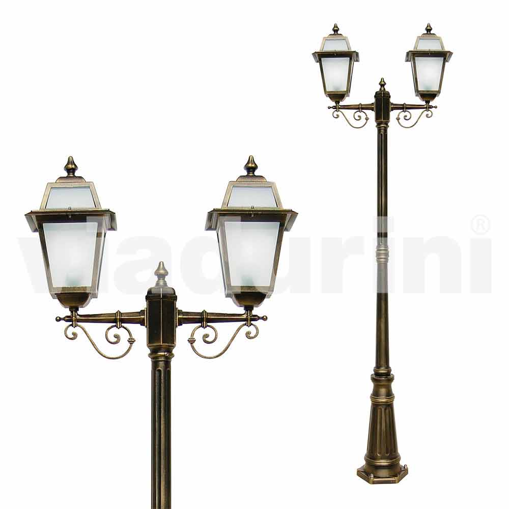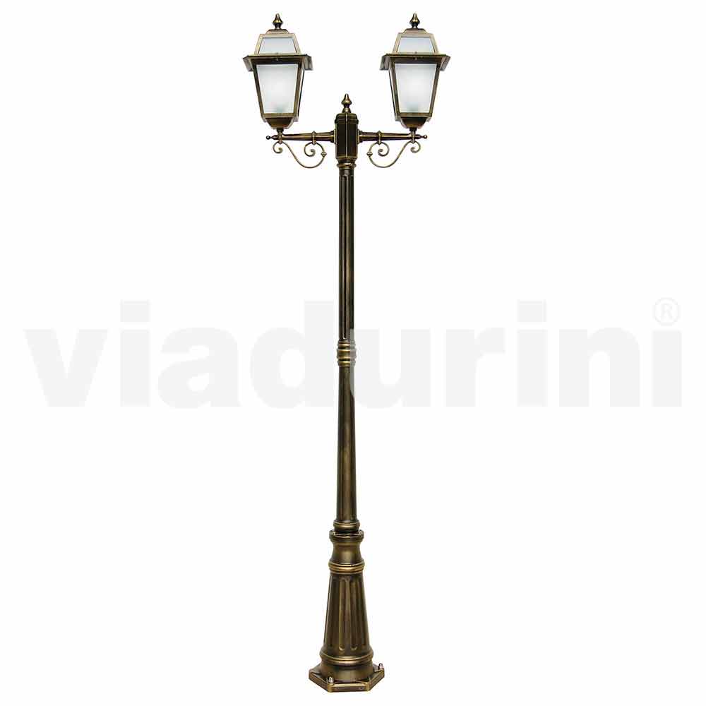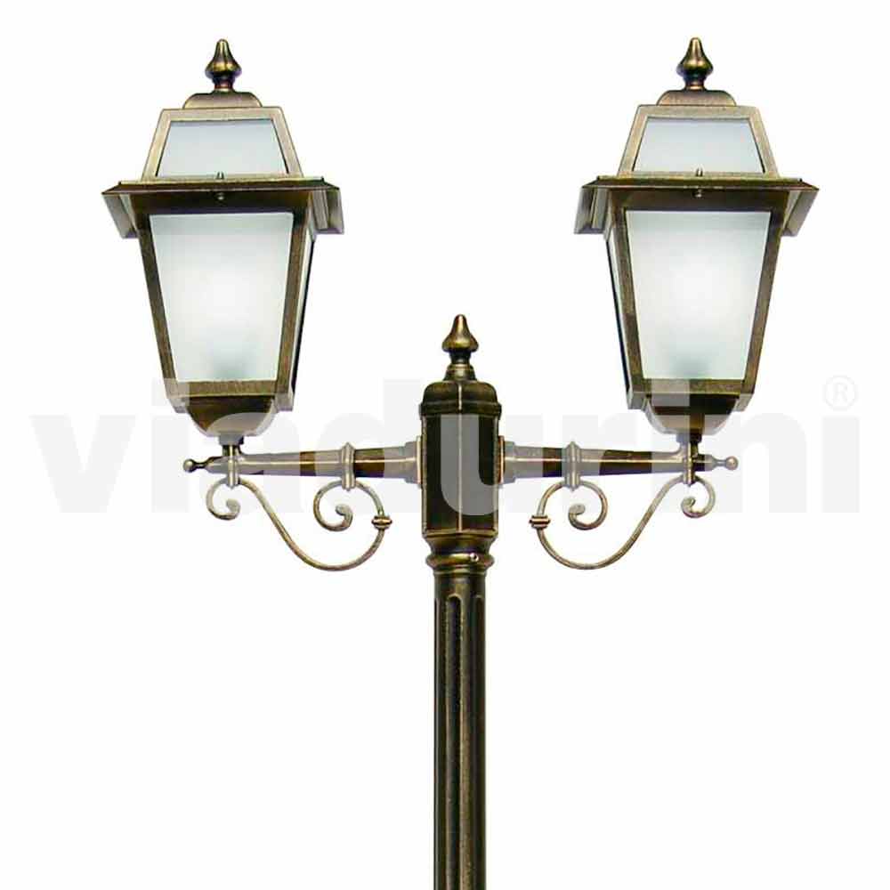 Lámpara de jardín de dos luces en aluminio fabricada en Italia, Kristel Kristel es una farola de exterior de dos luces hecha a mano en Italia con material de alta calidad: estructura de aluminio inyectado y difusor de cristal disponible: transparente o arenado.