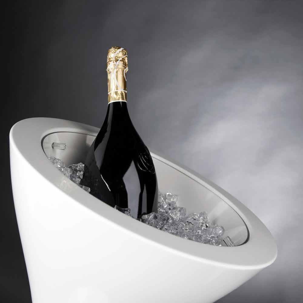 Floor Frappeuse fabricado íntegramente en Italia en polietileno blanco equipado con un portabotellas para hielo. Del procesamiento 100% Made in Italy y el uso de materias primas innovadoras, nace un accesorio de decoración extremadamente funcional, capaz de mantener la temperatura de los vinos para ofrecer frío y enriquecer el mobiliario circundante. Ideal para amueblar ambientes contract pero también espacios domésticos en los que recrear un pequeño e íntimo bar, este accesorio de decoración es a la vez moderno y eficiente, ofreciendo una solución perfecta para completar cualquier situación estilística de forma armoniosa e impecable para un resultado original y discreto. al mismo tiempo. Para incrementar su valor está el procesamiento 100% Made in Italy junto con el uso de materias primas de calidad que elevan su valor y aseguran un producto sólido, resistente y de excelente durabilidad .