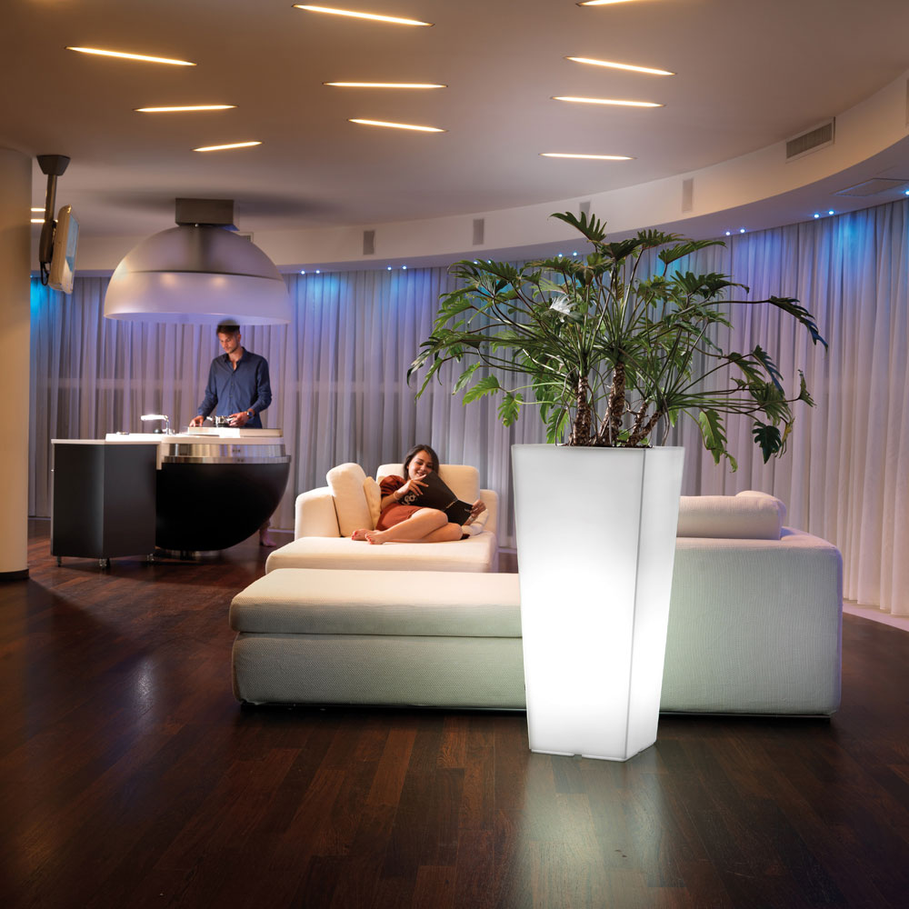 Este jarrón luminoso de interior fabricado en Italia en polietileno está disponible en diferentes tamaños para enriquecer y revolucionar el estilo de tu espacio vital con un carácter extravagante. Las líneas decididas y esenciales dan un toque clásico a este complemento de decoración disponible en varias formas y tamaños, sin eclipsar su elegancia y funcionalidad .