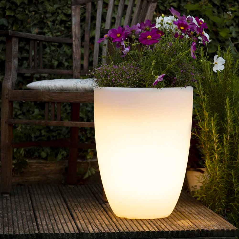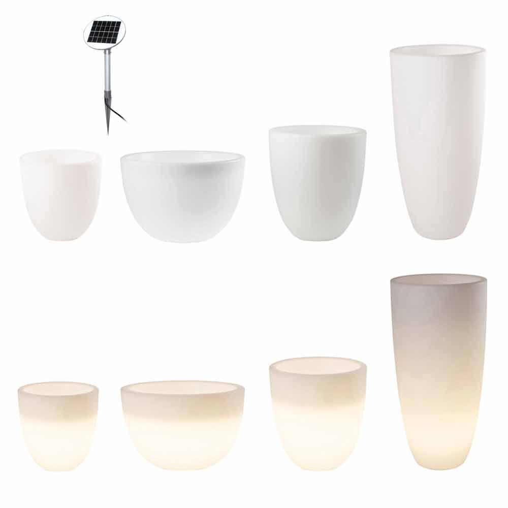 Florero luminoso de diseño moderno y versátil para interior o exterior con led o solar en varios tamaños.