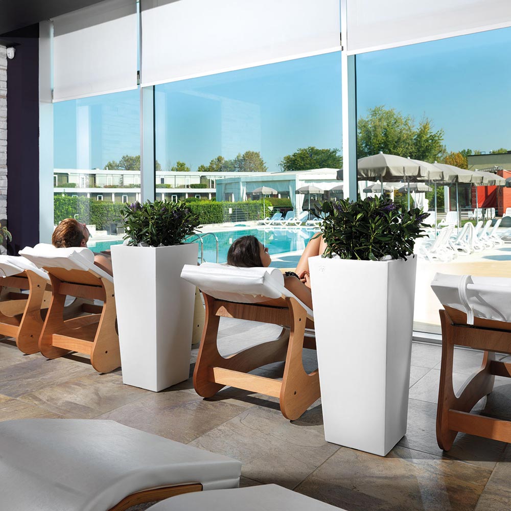 Producido en Italia, este jarrón de exterior está fabricado en polietileno coloreado , un material de alta calidad útil para garantizar al producto la máxima resistencia y una gran estabilidad . Este elemento de decoración se caracteriza por un diseño minimalista y original , compuesto por líneas esenciales y una forma cuadrada que se ensancha ligeramente hacia afuera como para acoger plantas y flores con calidez y elegancia.
