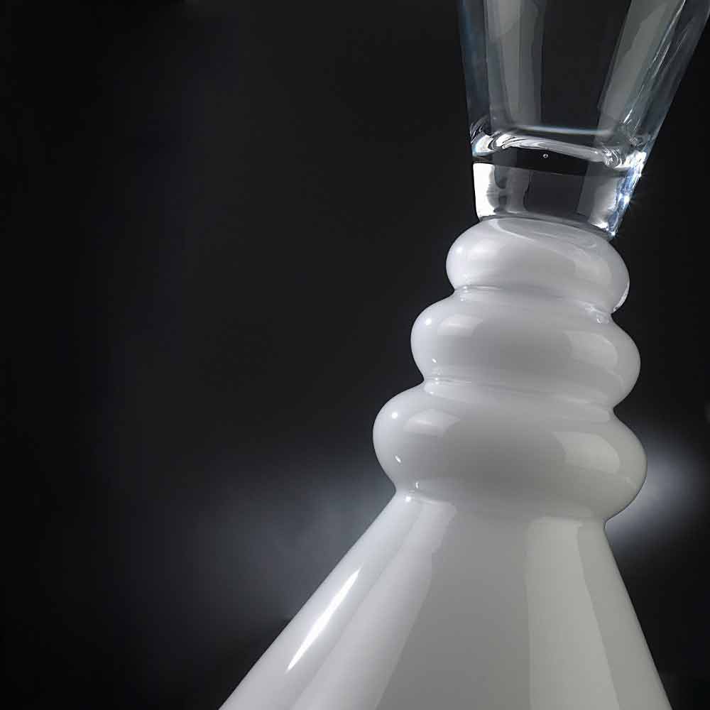 Jarrón ornamental en vidrio transparente y blanco fabricado en Italia.
