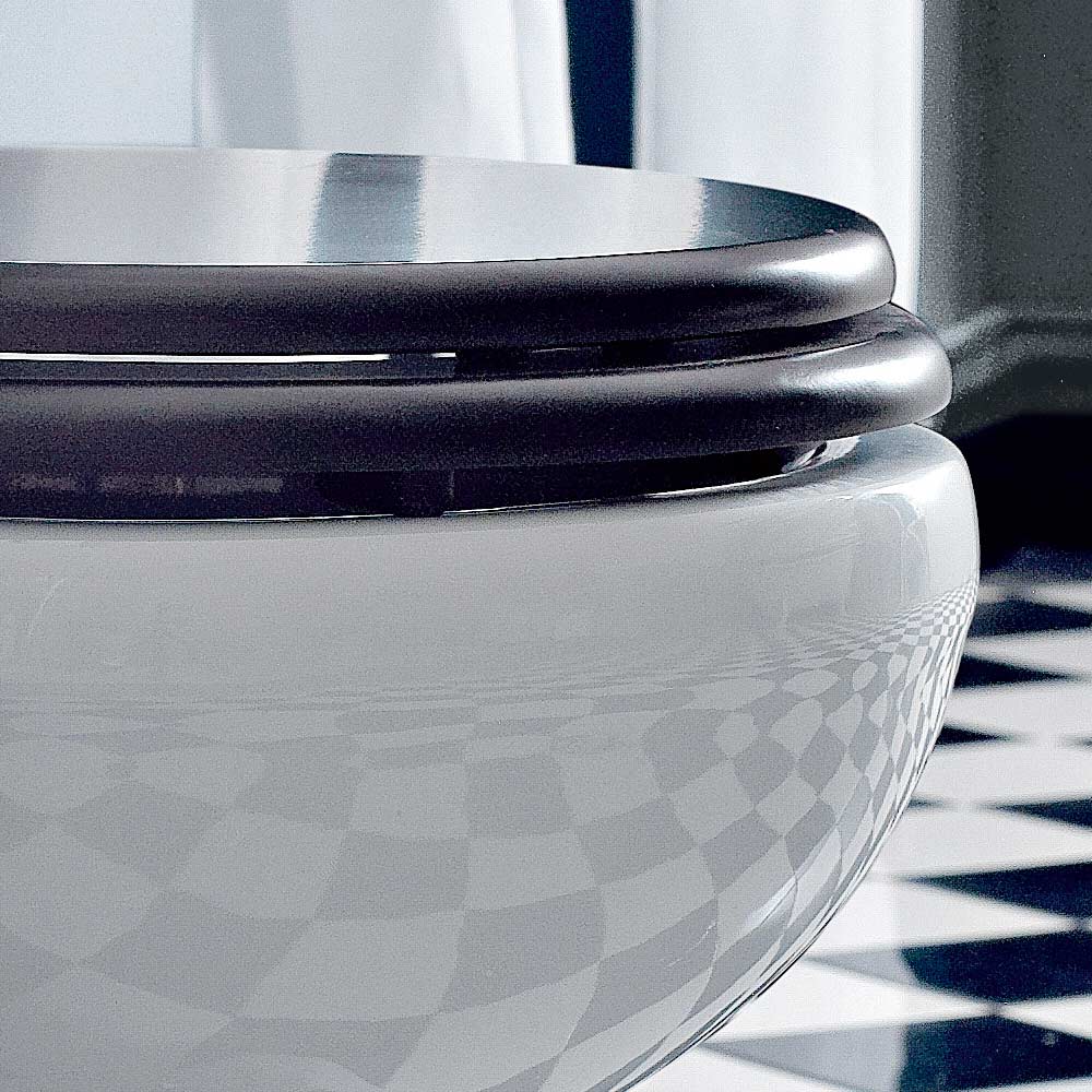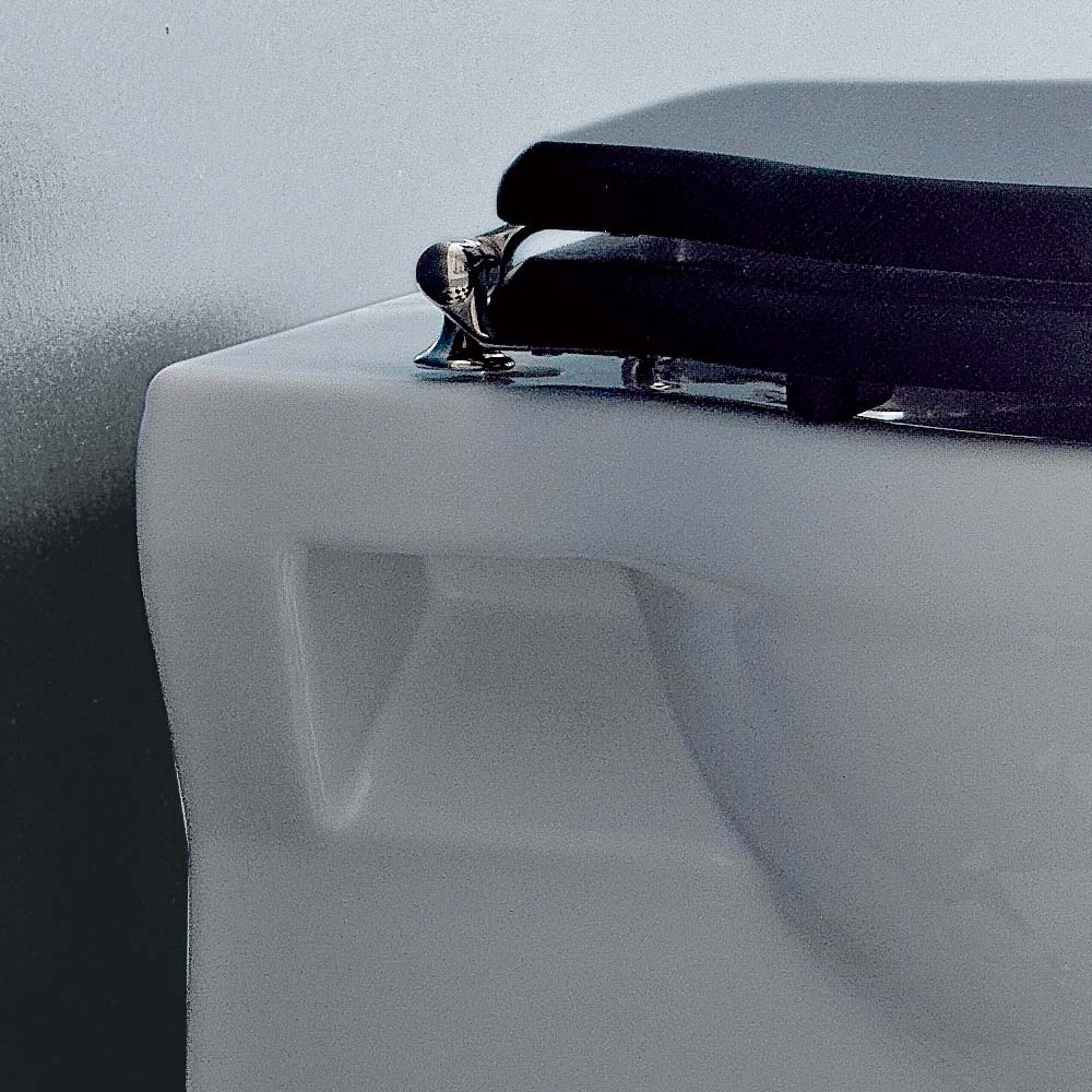 de cerámica, con un asiento de negro mate y bisagras de níquel.
