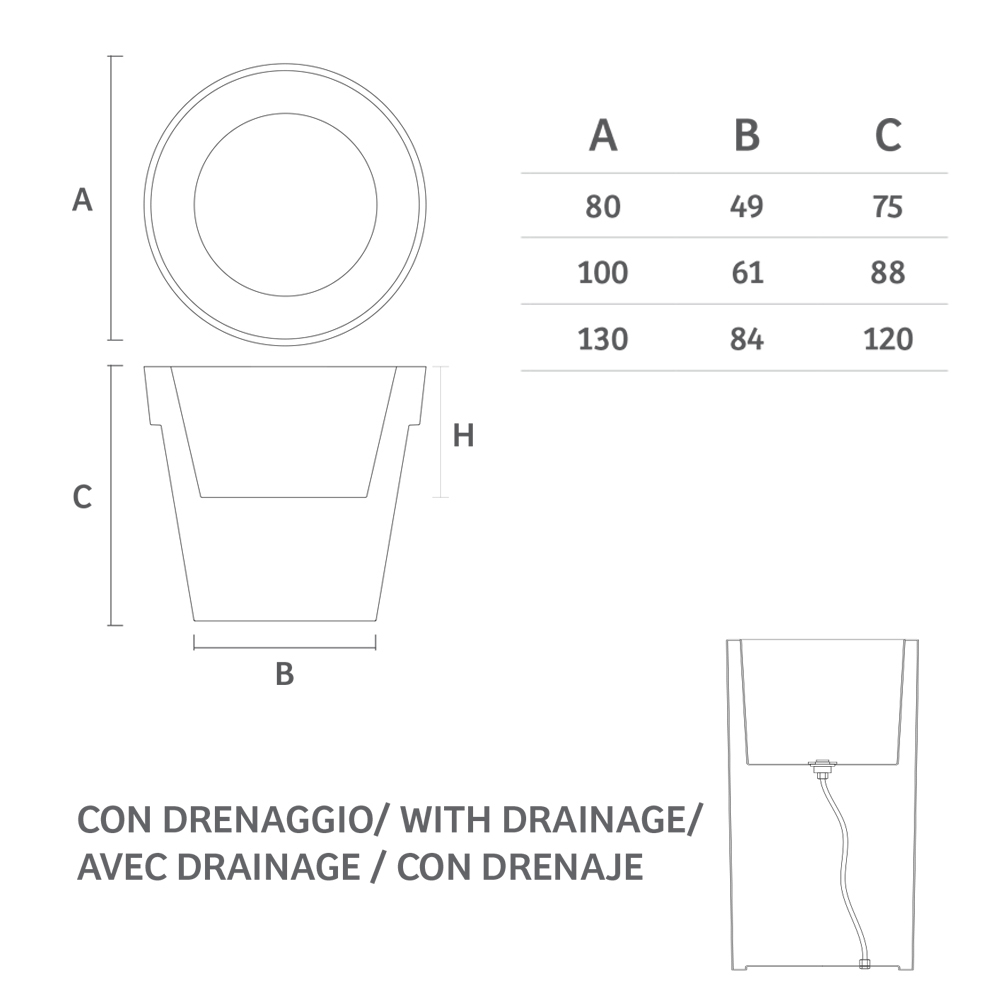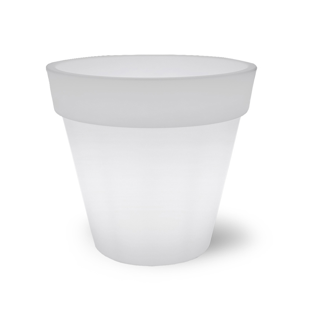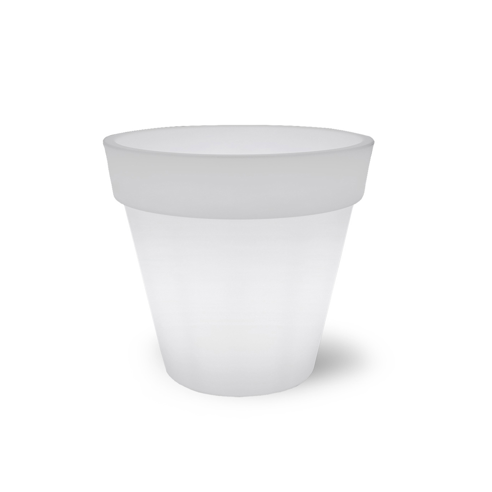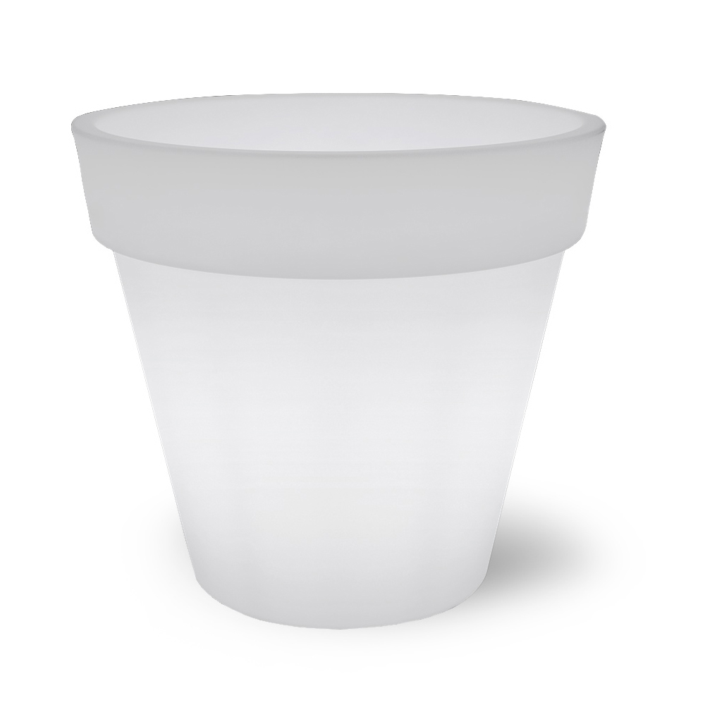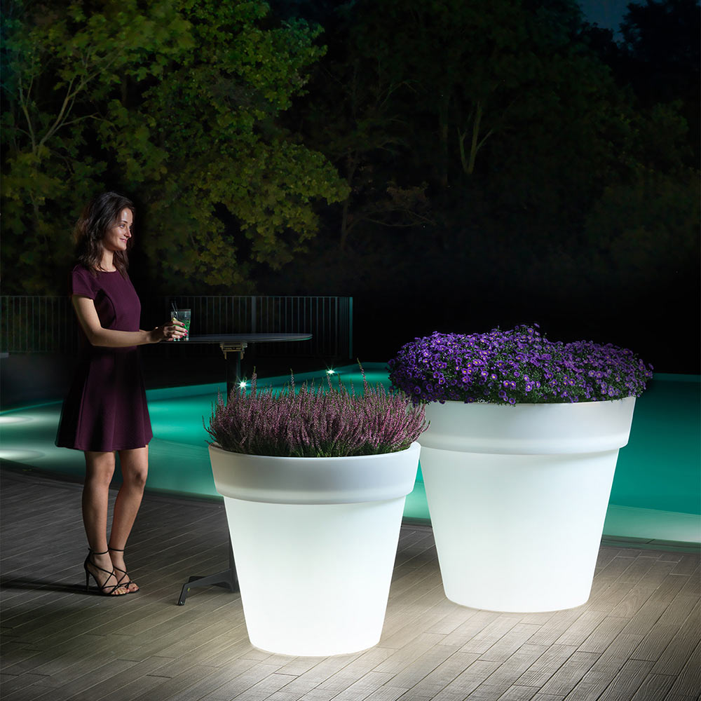 El luminoso jarrón de exterior en polietileno perlado fabricado en Italia está disponible en diferentes tamaños para amueblar el espacio exterior con personalidad y Aproveche su elegante funcionalidad . La estructura incluye además un kit de drenaje de agua que hace que este jarrón sea muy práctico sin descuidar el resultado final, una atmósfera radiante de luz elegante y sugerente. La luz LED integrada hace de este jarrón de exterior un complemento de decoración contemporáneo, con líneas suaves que reflejan una idea de estilo clásico pero increíblemente elegante.