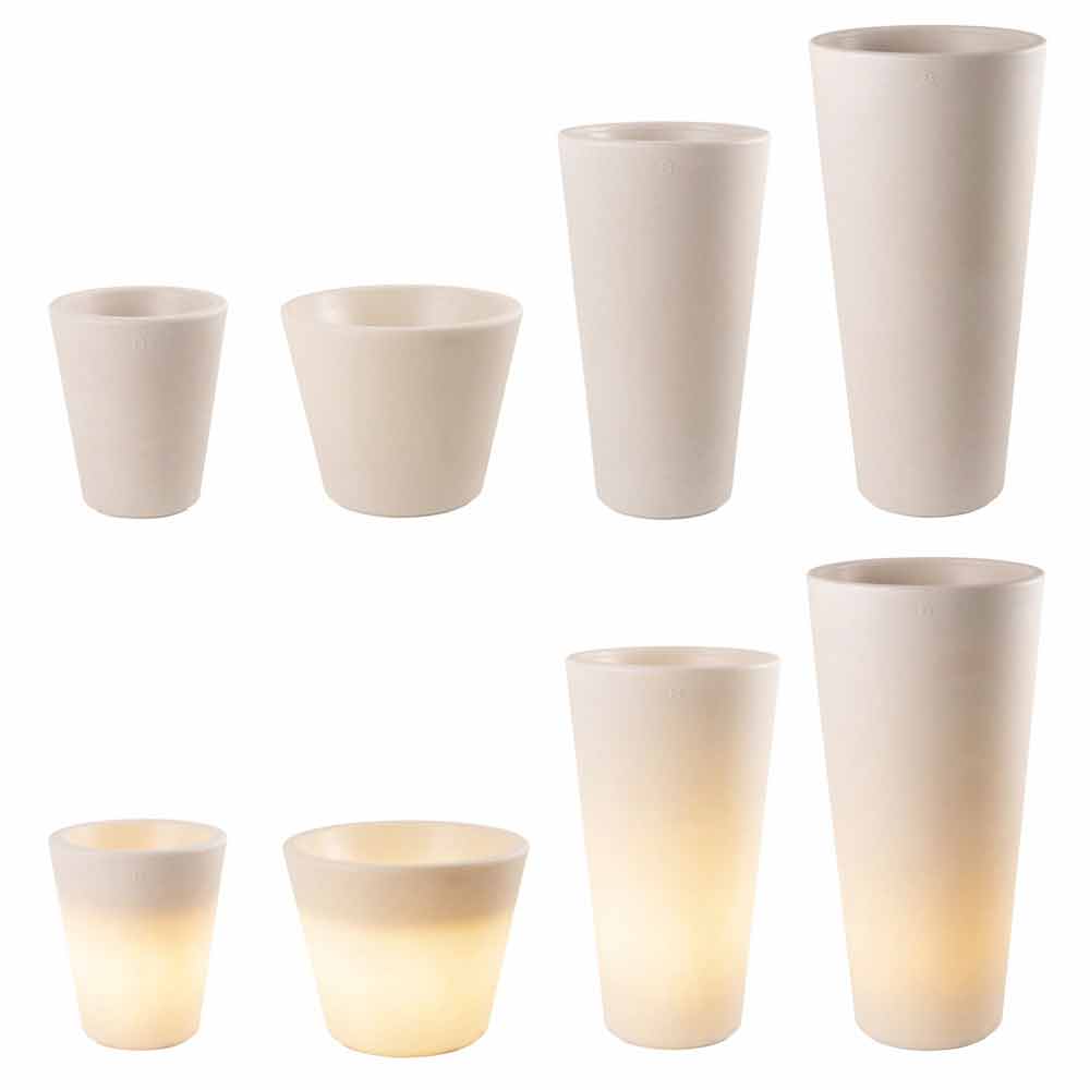 Florero luminoso para interiores o exteriores de colorido y diseño moderno con conexión E27 de diferentes tamaños.