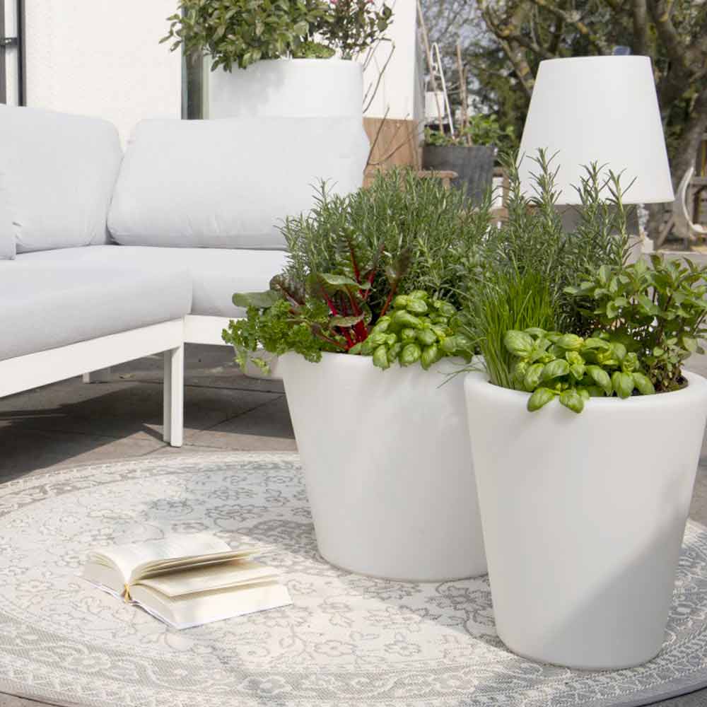 Las líneas suaves y atemporales dan vida a un diseño único para ser insertado en espacios interiores o exteriores, en polietileno de alta calidad que hace que el producto sea sostenible y reciclable.