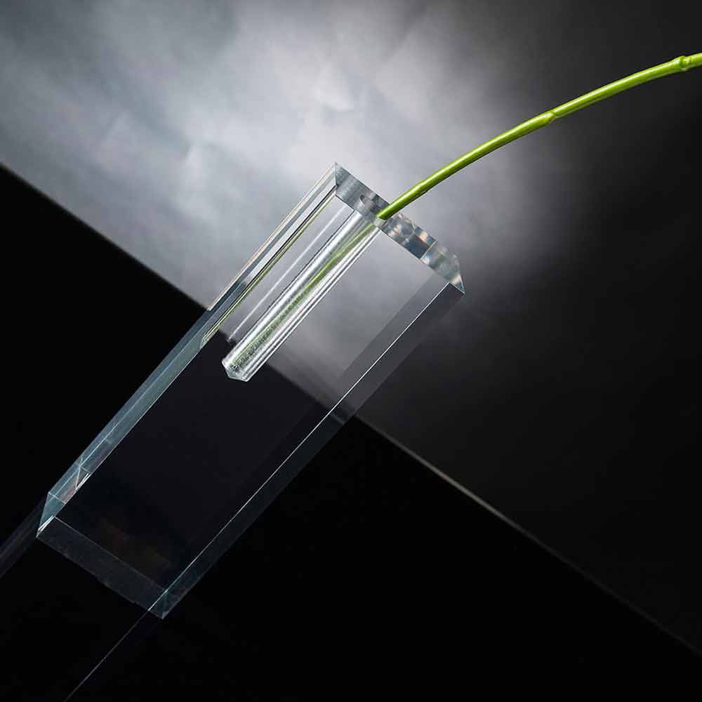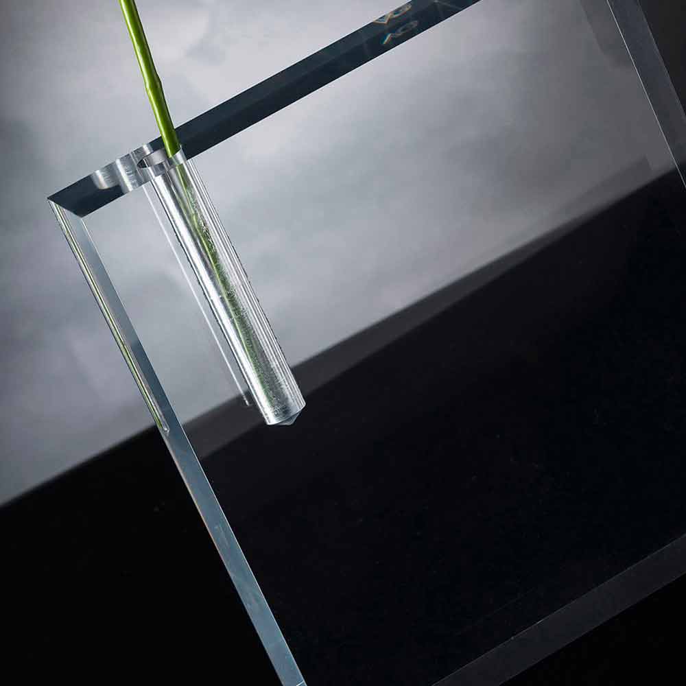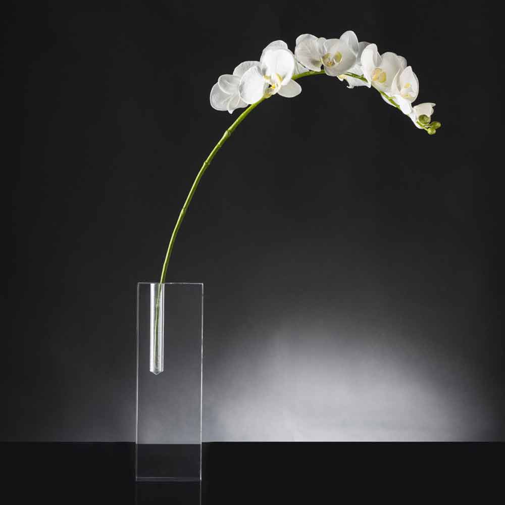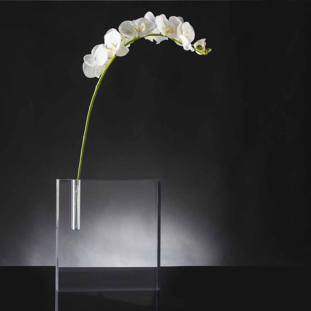 Florero decorativo para interiores en plexiglás transparente Made in Italy.