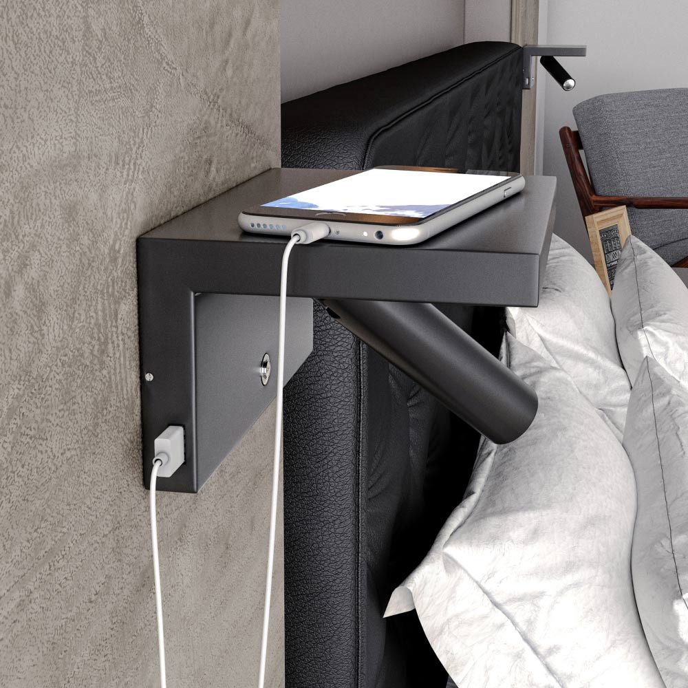 Su estructura mínima y la idea detrás de su realización la hacen ideal para colocarla al costado de la cama, encima de la mesita de noche, ofreciendo así una iluminación directa perfecta para aquellos que aman dedicarse a la lectura antes de irse a dormir gracias al innovador LED regulable en tres posiciones diferentes y al mismo tiempo asegura una cómoda conexión para cargar tus dispositivos electrónicos de forma práctica y bien organizada a través de los dos puertos USB.