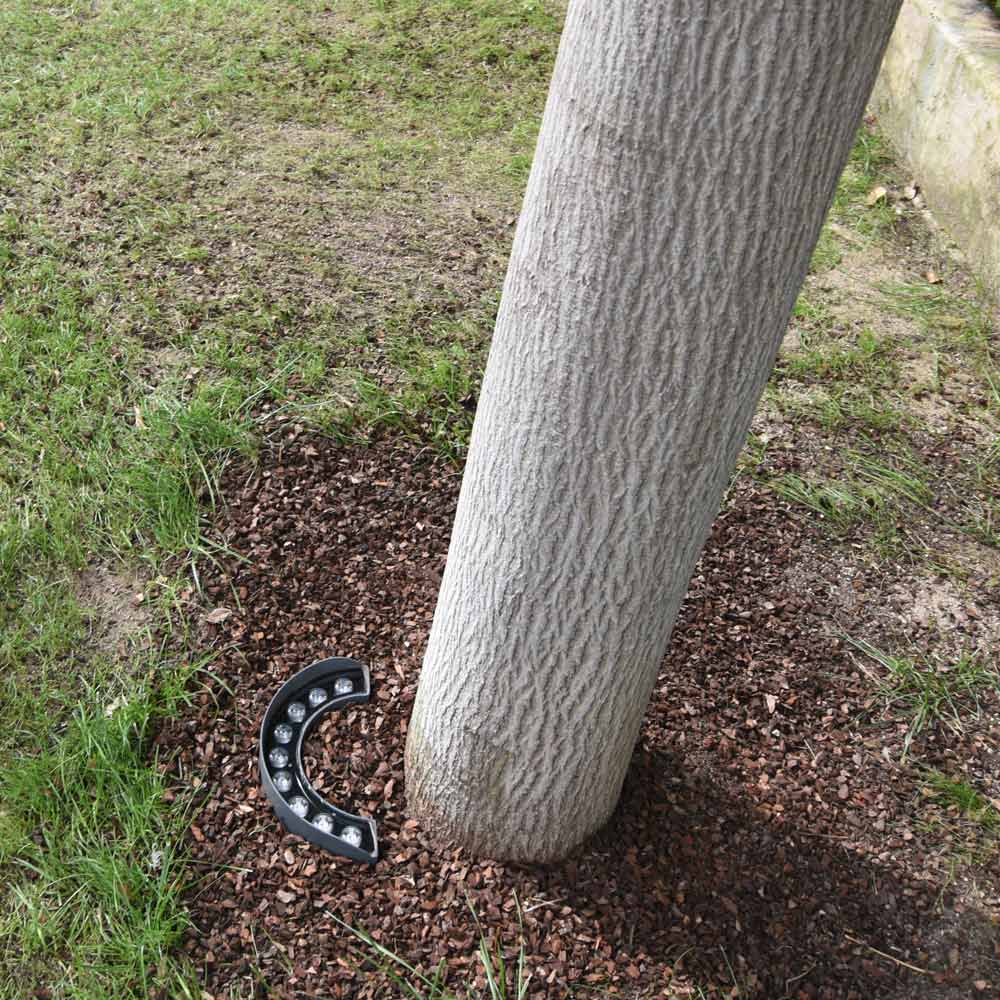 Lámpara de exteriorcon estructura de aluminio negro y acero inoxidable completa con LED de 9W . Un mueble con una funcionalidad exclusiva cuya forma está diseñada para iluminar elementos de hasta 9 metros de altura como árboles colocados en el jardín de tu casa o en ambientes contract exteriores permitiéndote iluminarlos desde la base hasta la corona para un efecto único y escenográfico. .