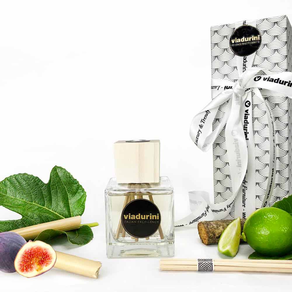 Fragancia casera con fragancia cítrica de bambú y lima con palitos - Esencia Made in Italy.