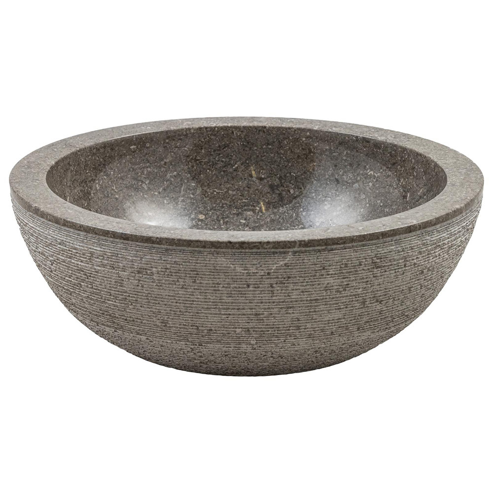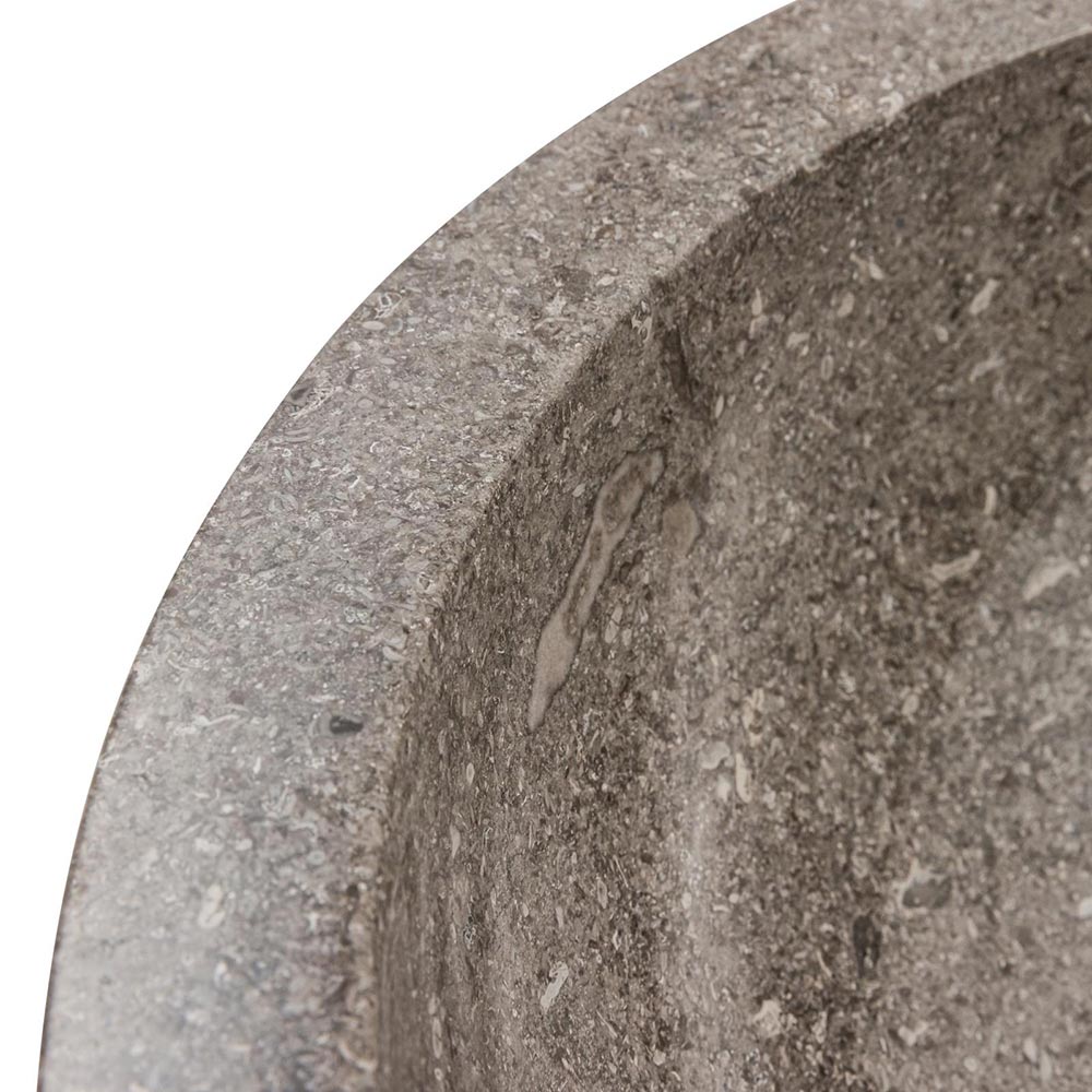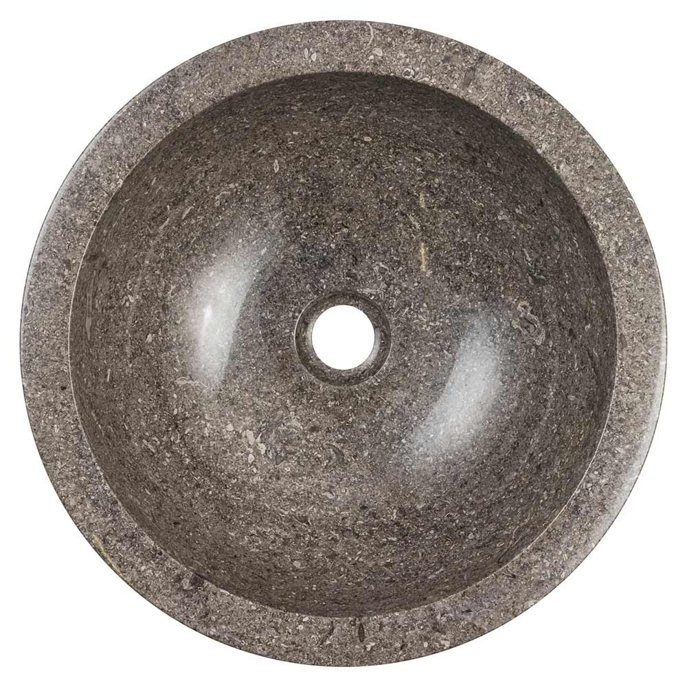 Bucine es un hermoso lavabo de encimera circular hecho a mano en mármol gris.