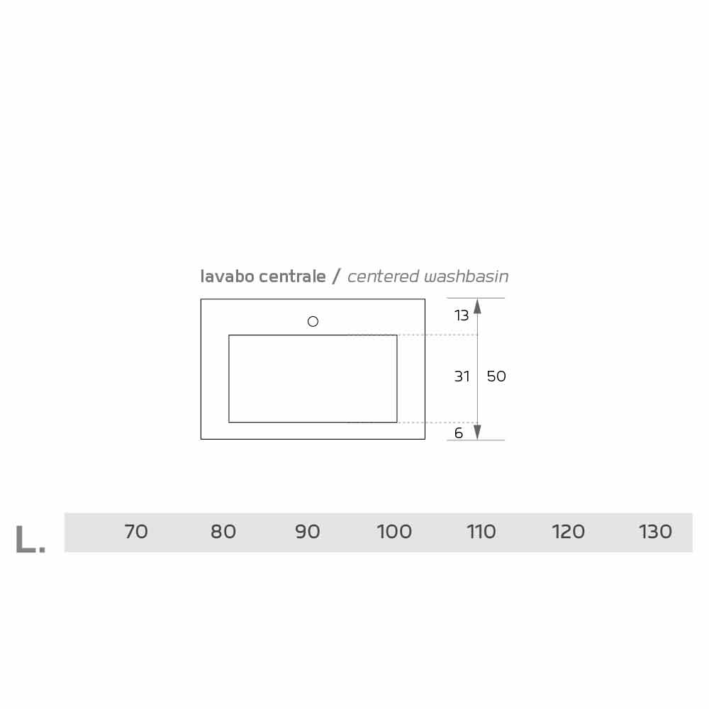 Disponible en 16 colores diferentes y siete tamaños diferentes: - L 70 x P 50 x H 12 cm; - L 80 x P 50 x H 12 cm; - L 90 x P 50 x H 12 cm; - L 100 x W 50 x H 12 cm; - L 110 x W 50 x H 12 cm; - L 120 x W 50 x H 12 cm; - L 130 x W 50 x H 12 cm.