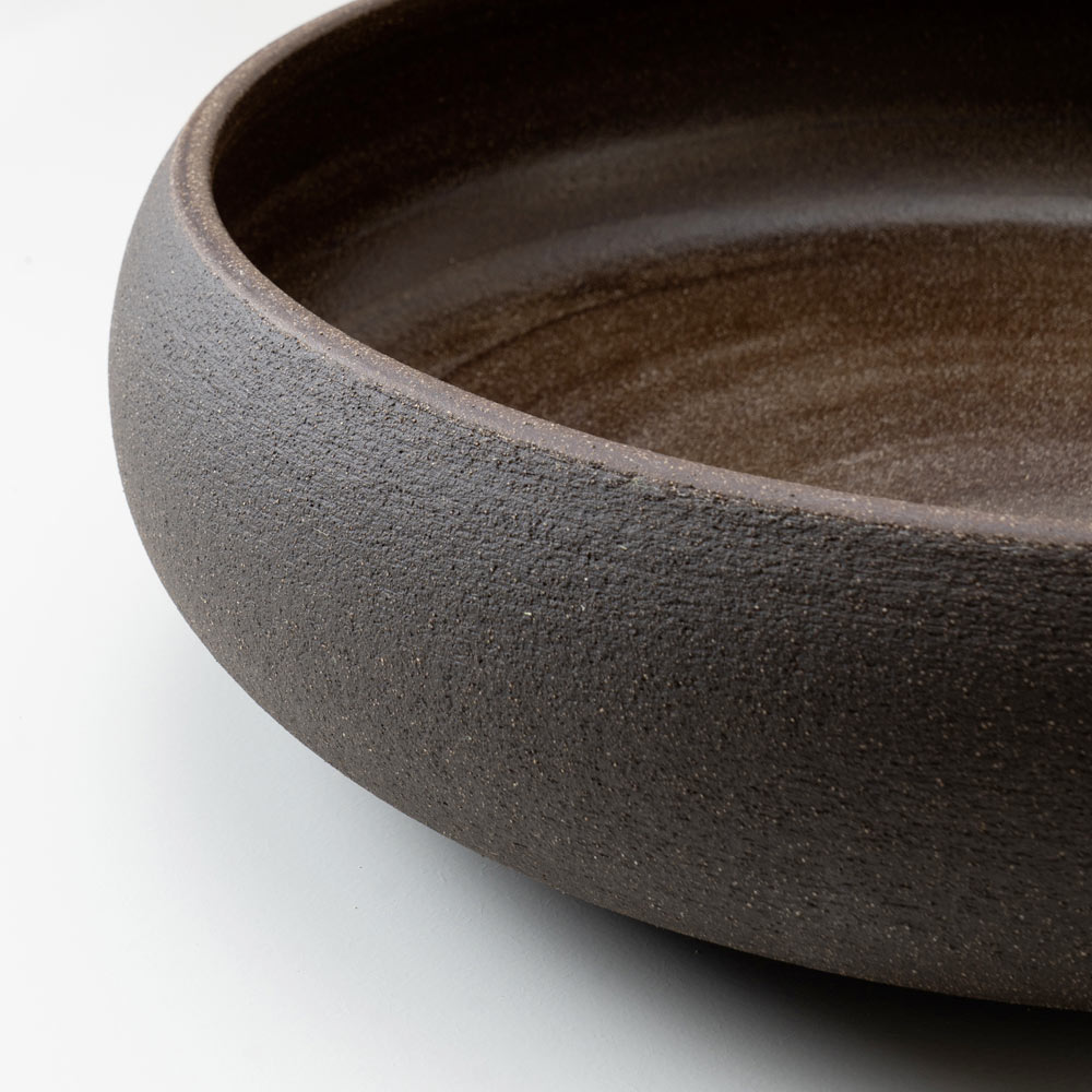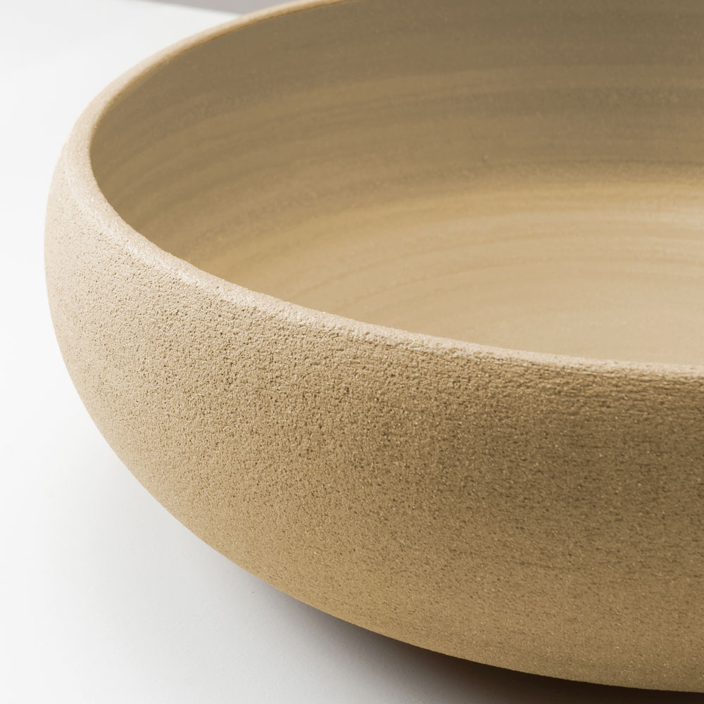 El interior está acabado con un cristal transparente brillante , lo que garantiza una superficie lisa y luminosa, mientras que el exterior conserva el aspecto texturizado de la arcilla refractaria, disponible en dos variaciones de color. El contraste entre las superficies esmaltadas y naturales realza el carácter artesanal del fregadero.