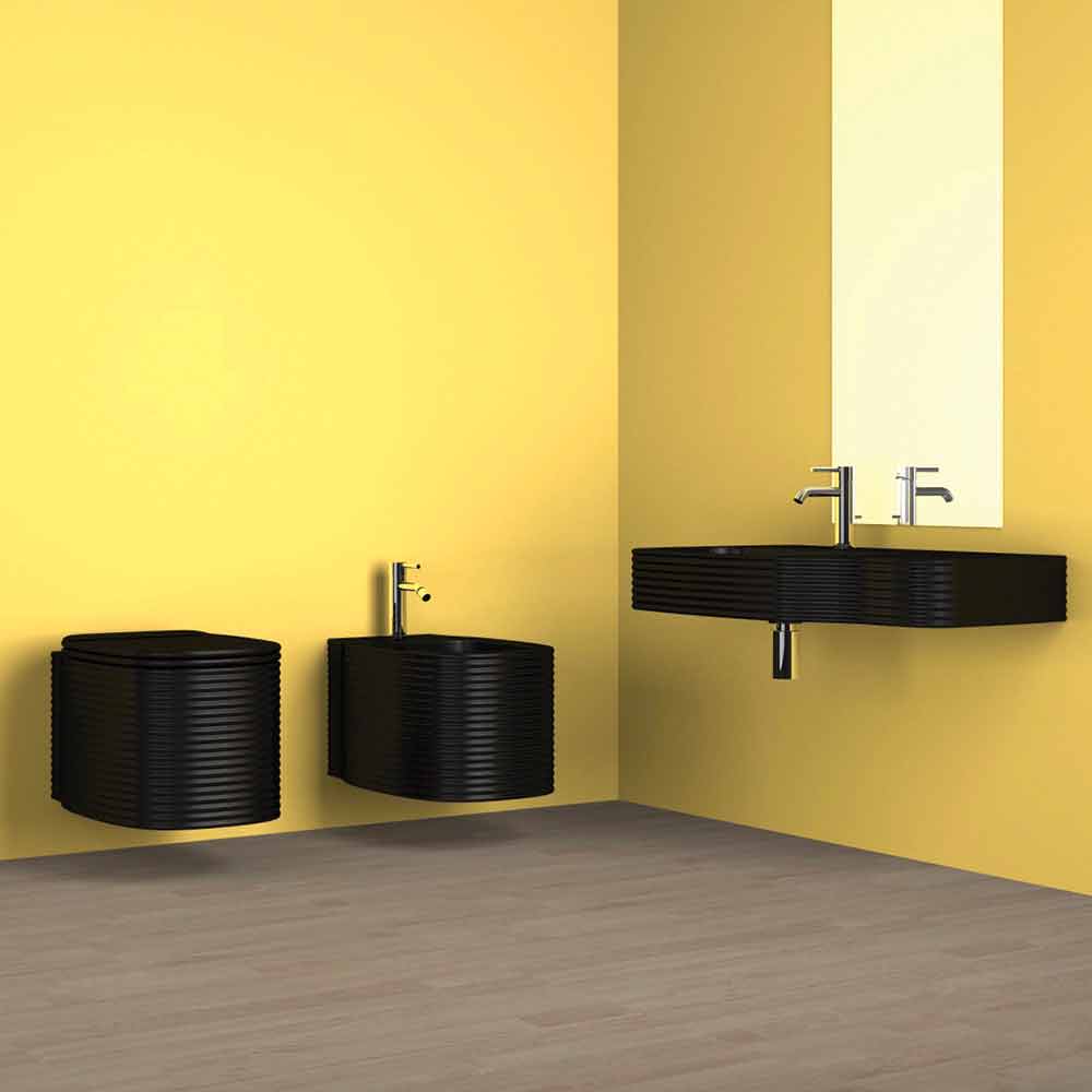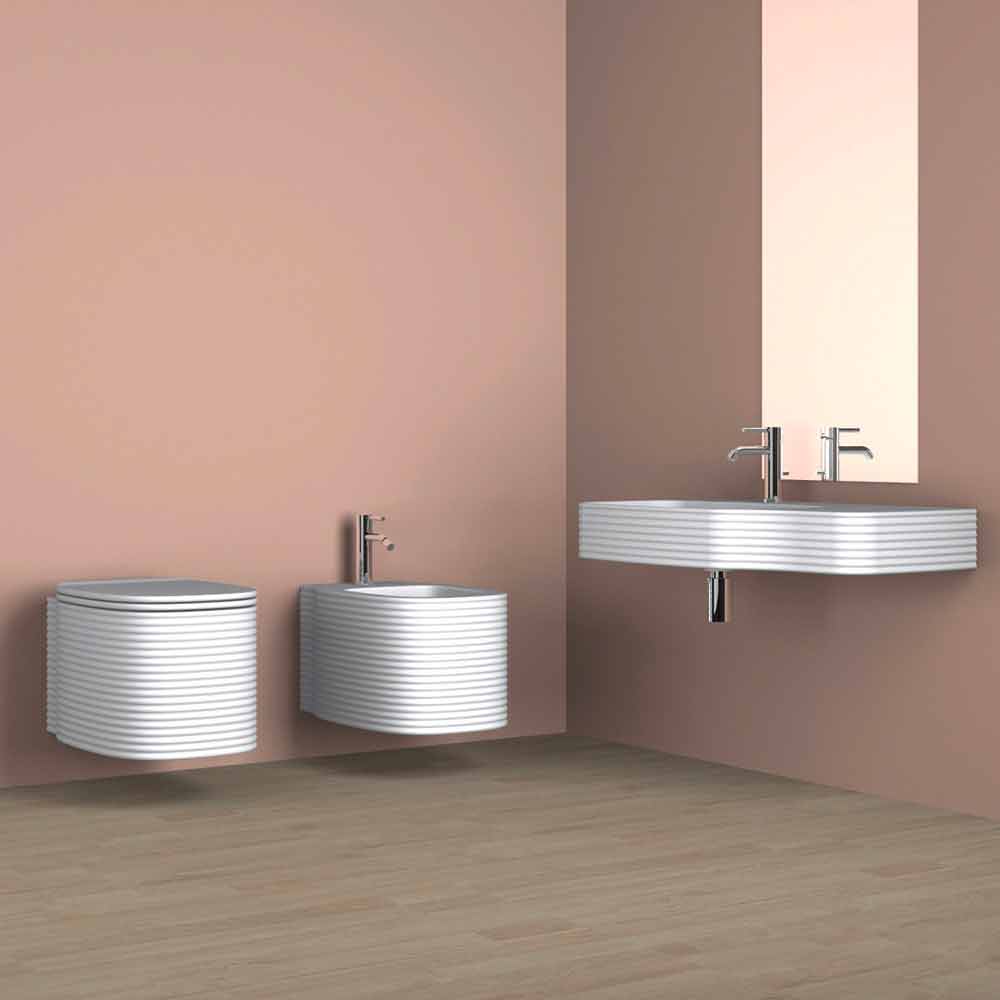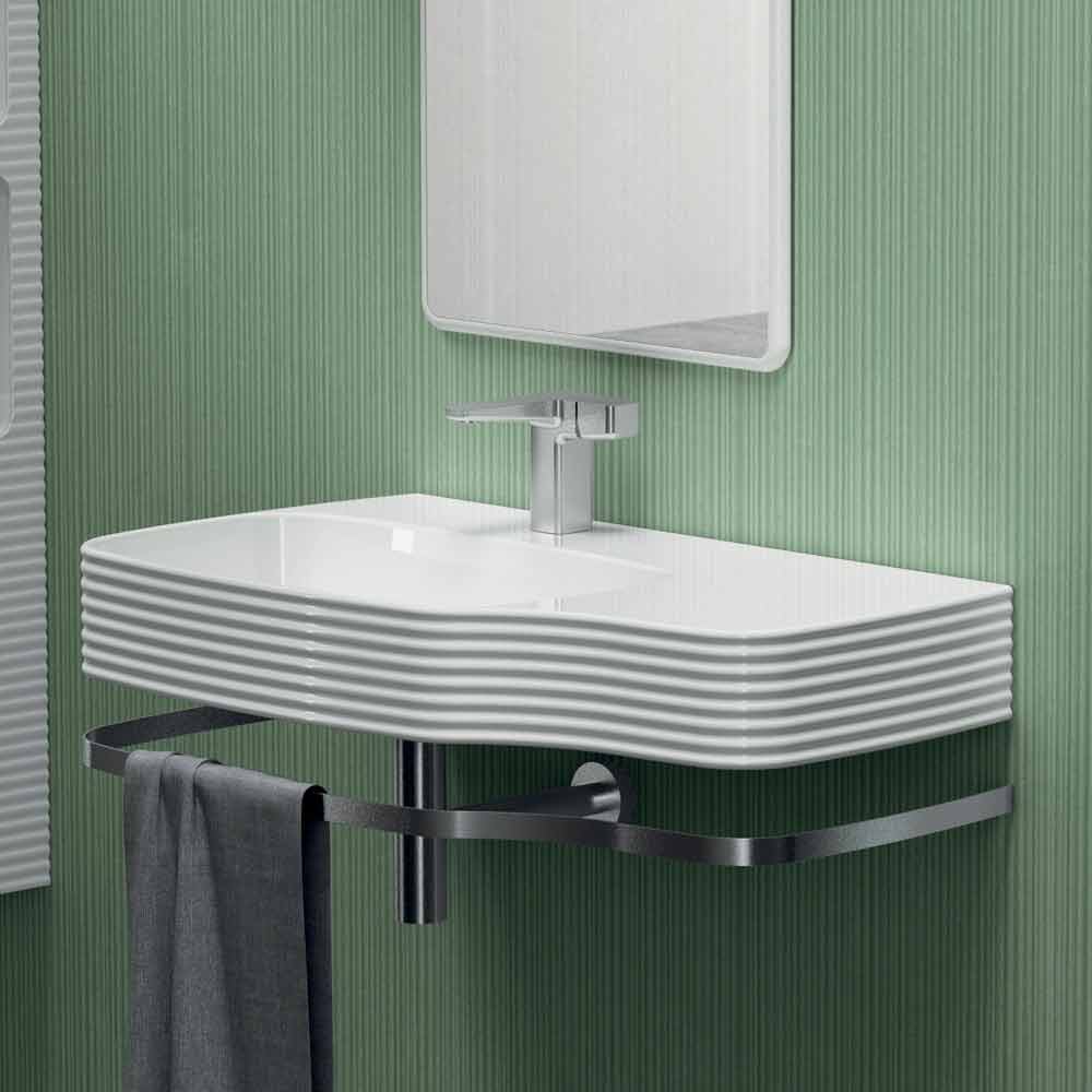 Amleto es un peculiar fregadero de encimera de cerámica hecho a mano en Italia caracterizado por un diseño original con un fuerte impacto estético, que es perfecto para decorar cualquier tipo de baño.