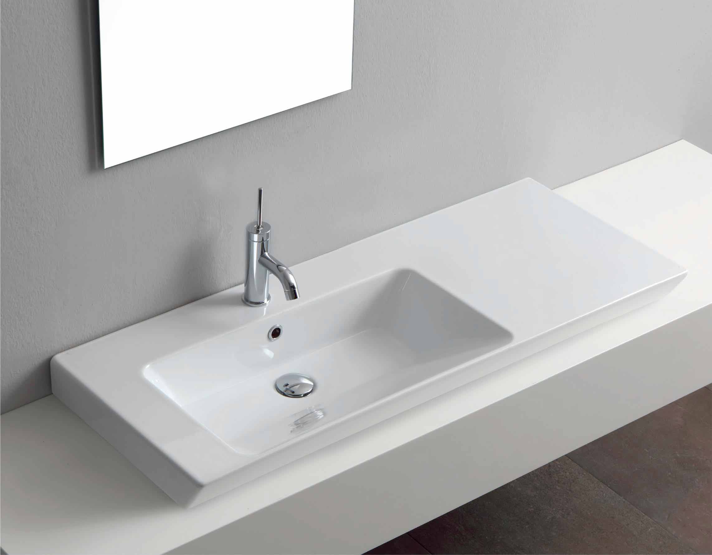 Fregadero de encimera moderno en la pared izquierda de cerámica de Maida.