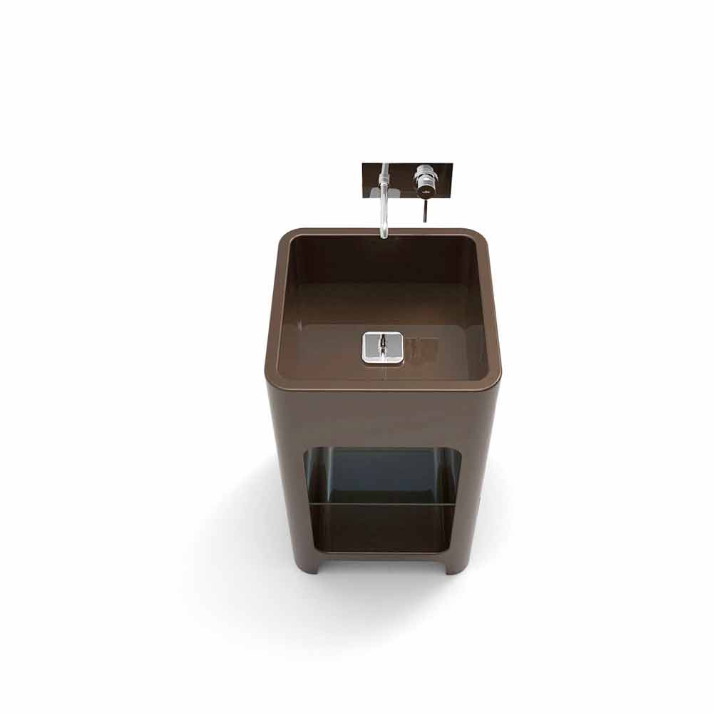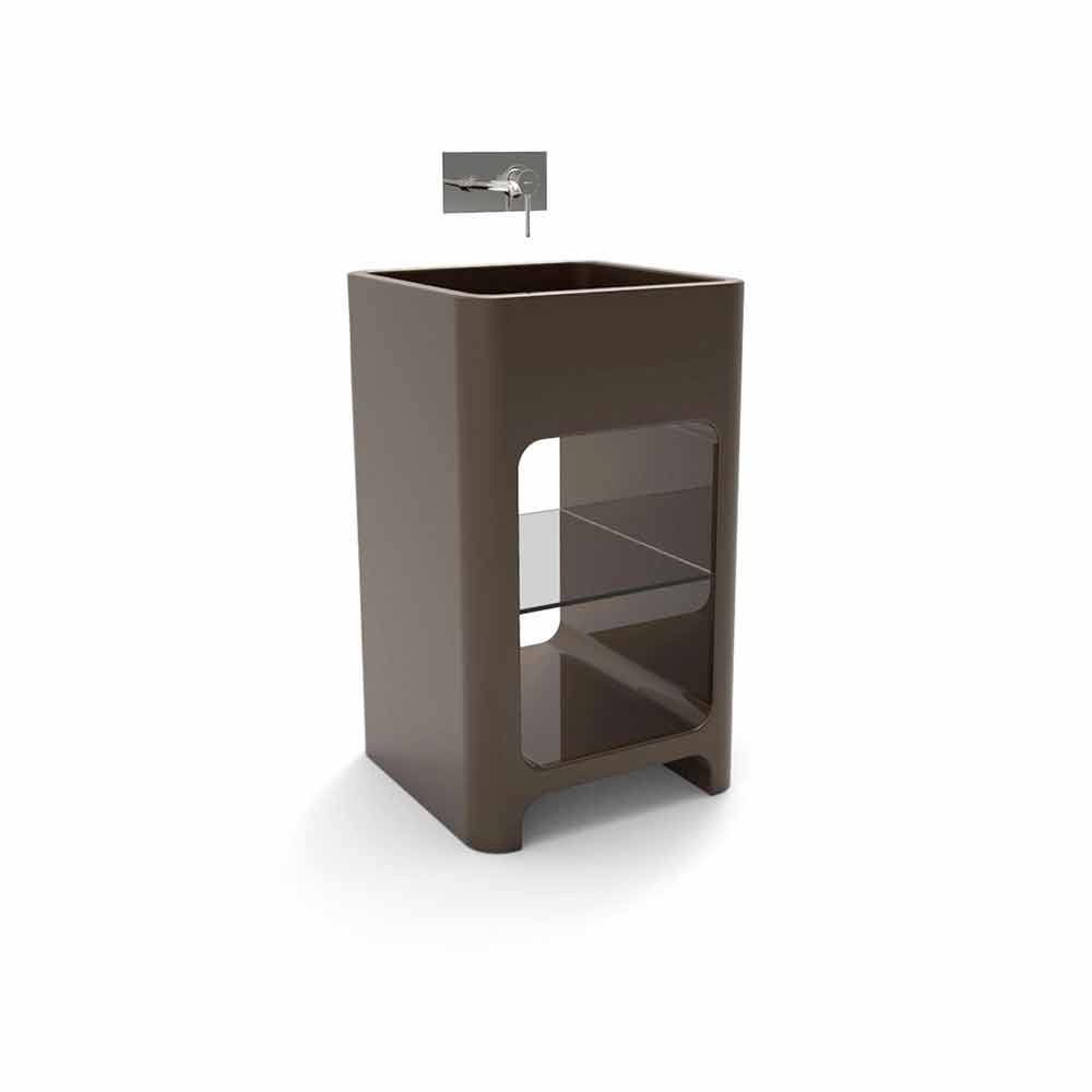 Fregadero monobloque independiente moderno producido en Italia, Tufino Tufino es un lavabo multifuncional con un diseño innovador y moderno, monobloque exento. Realizada íntegramente en resina Solid Surface® con una bañera incorporada dentro de la estructura en la que se encuentran dos zonas de almacenaje para productos de baño o ropa blanca, separadas por un elegante plano de cristal. Perfecta para amueblar tu baño con funcionalidad y diseño.