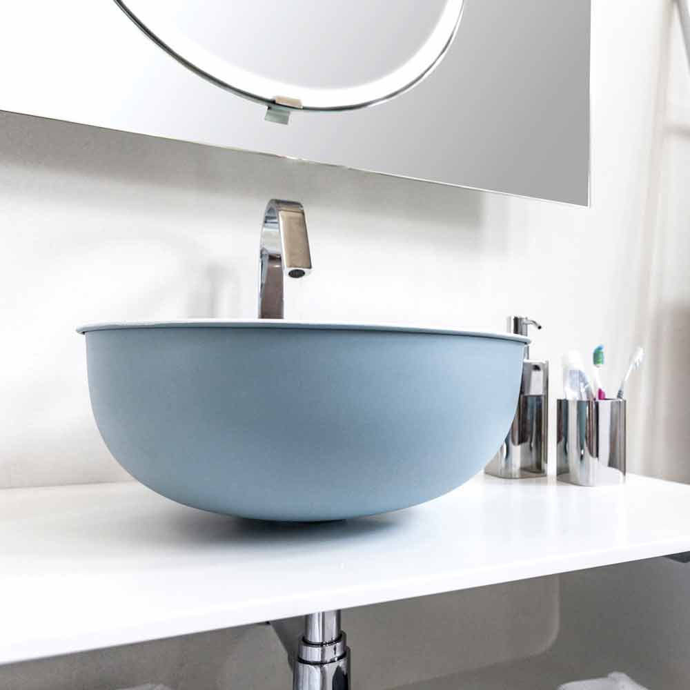 Lavabo de baño sobre encimera moderno en metal esmaltado.