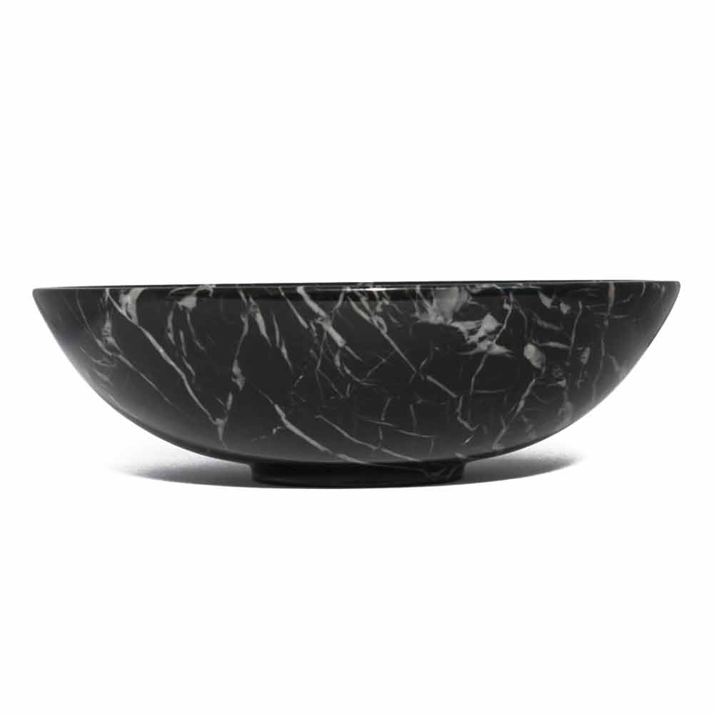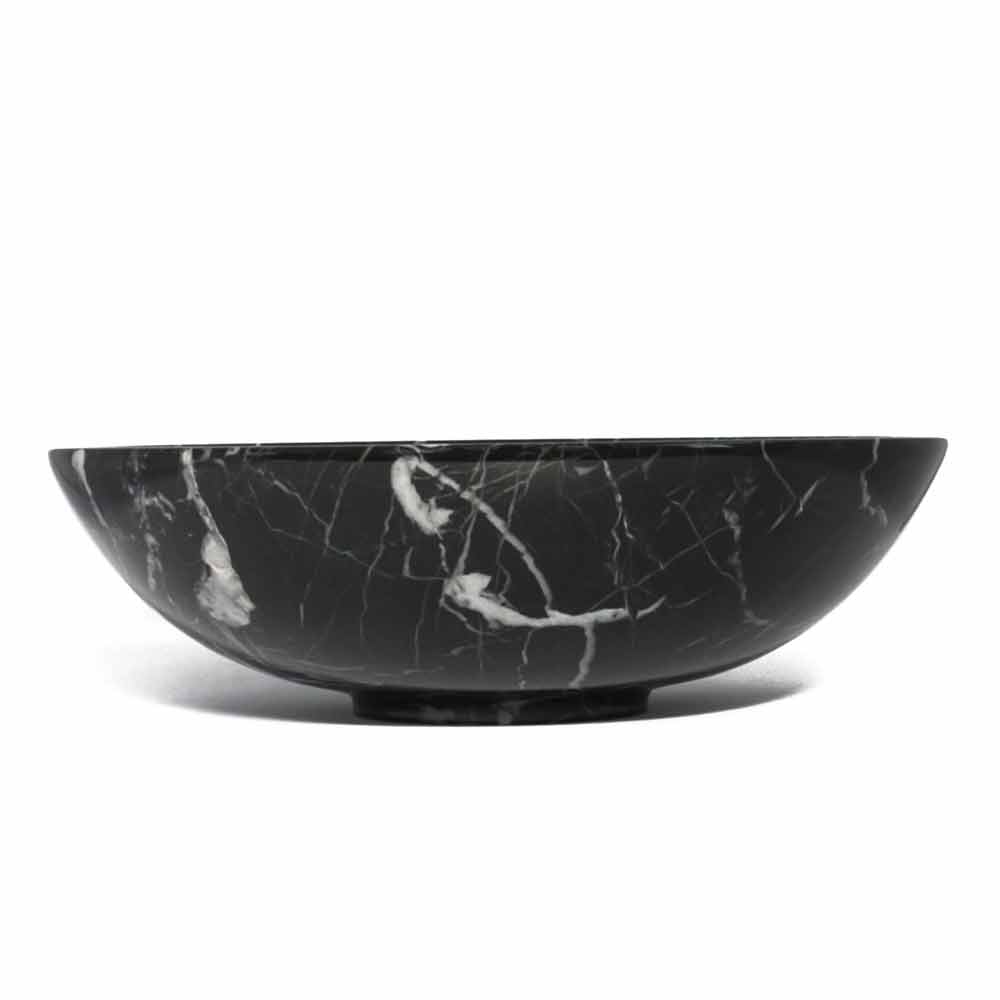 Frutero de diseño redondo en mármol Portoro, Paonazzo o Marquinia Made in Italy.