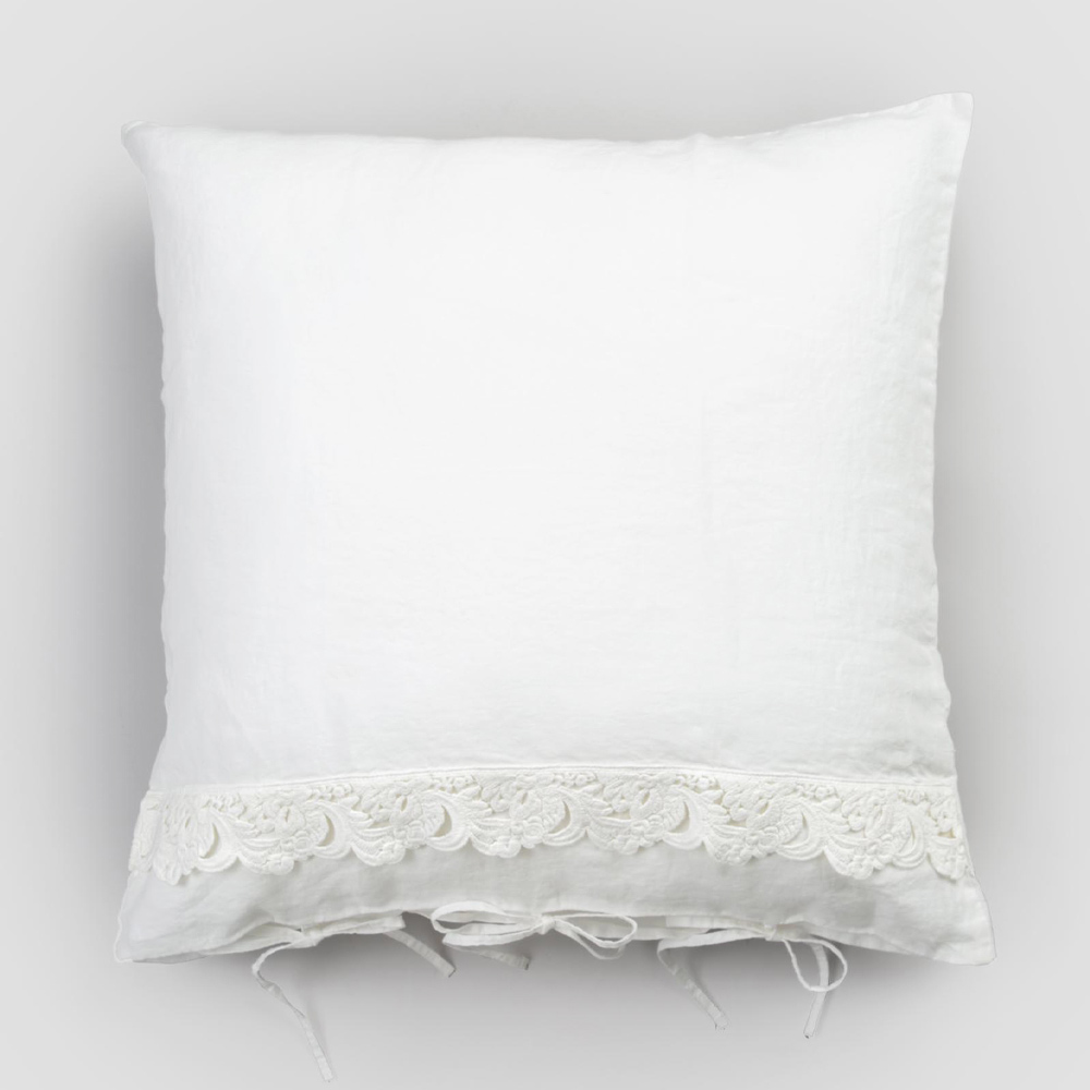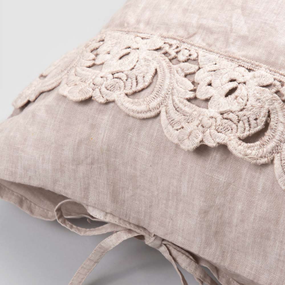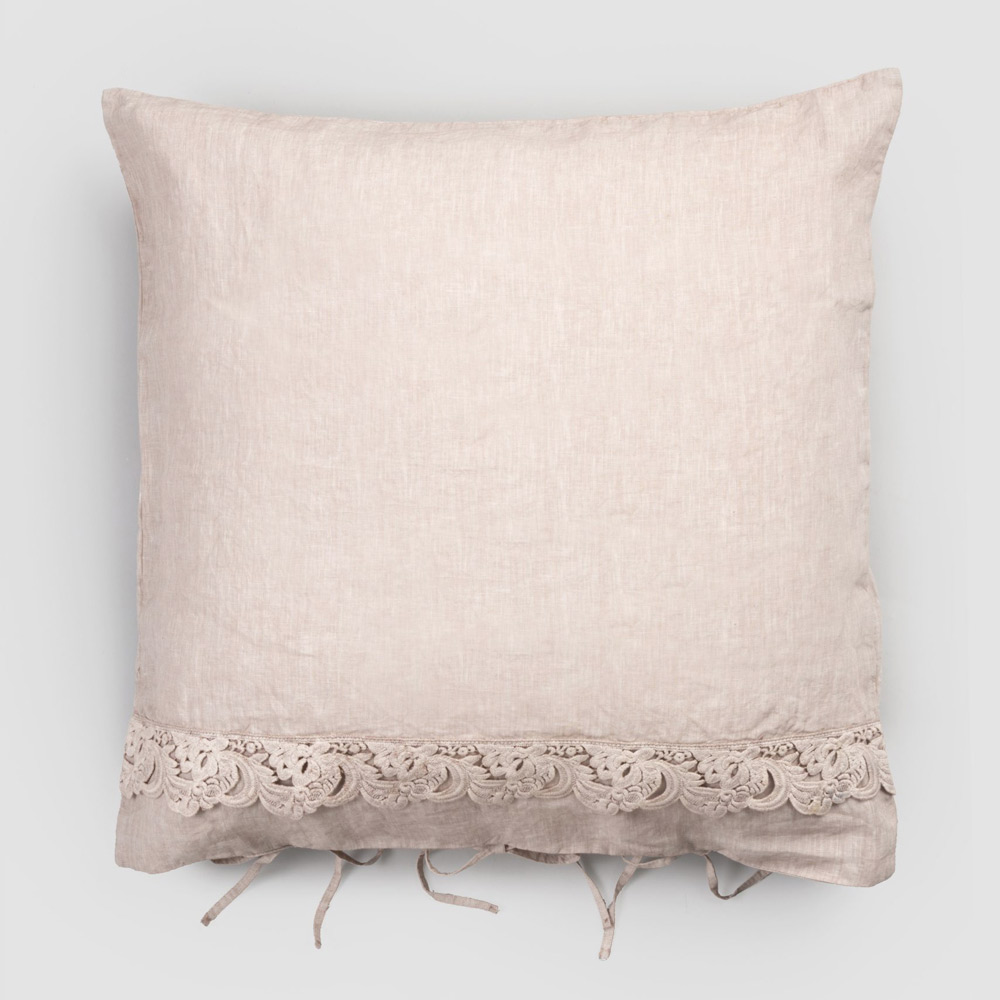 Funda de almohada cuadrada de lino puro con encaje de armonía y botones con cordones, 2 colores made in Italy.