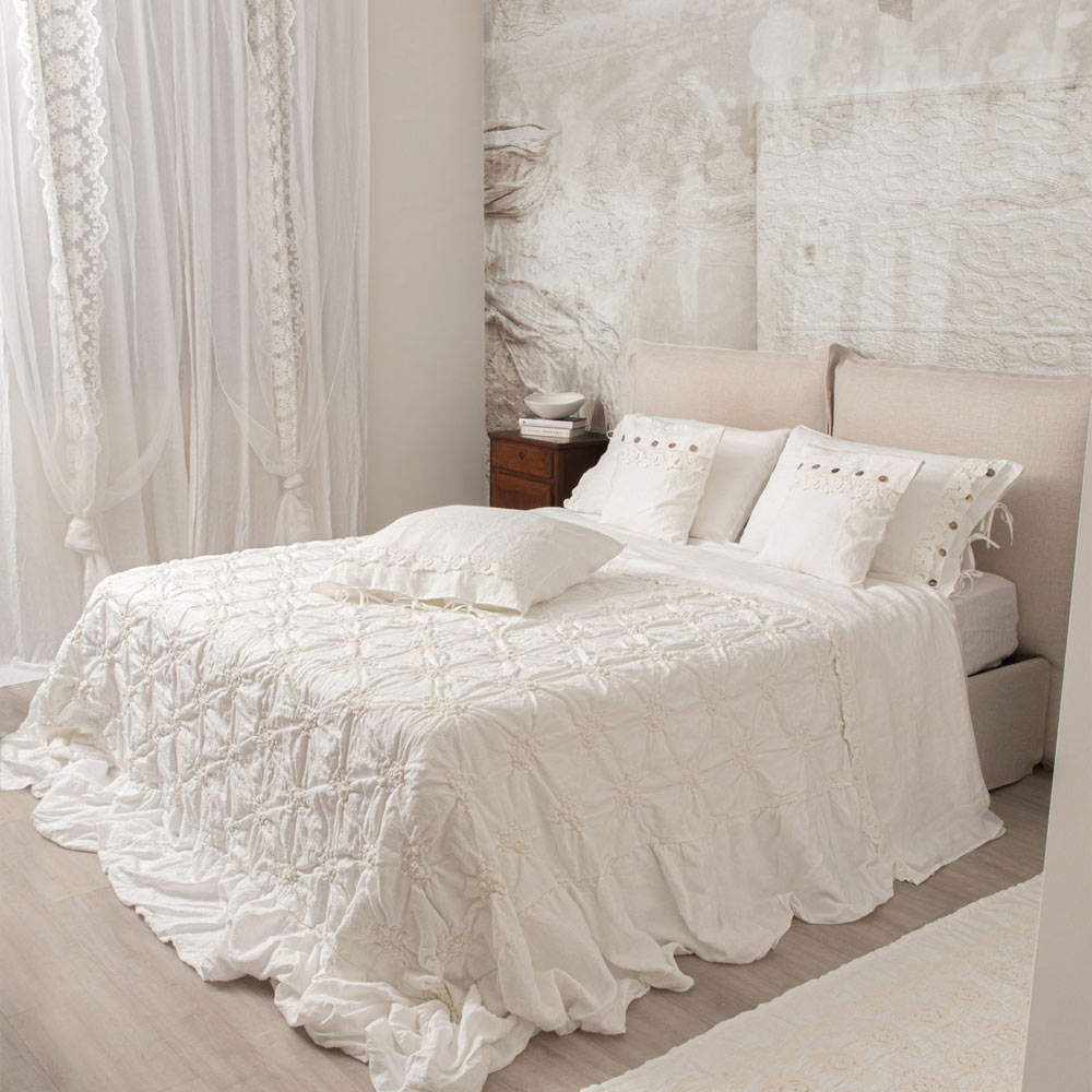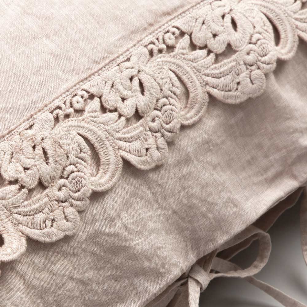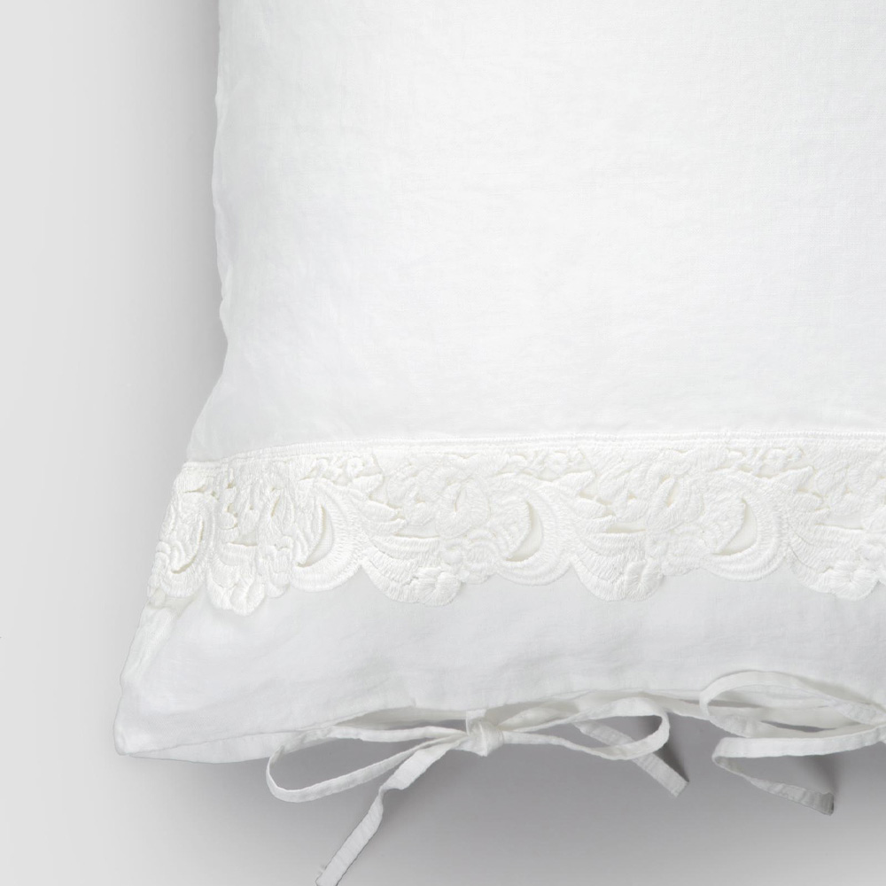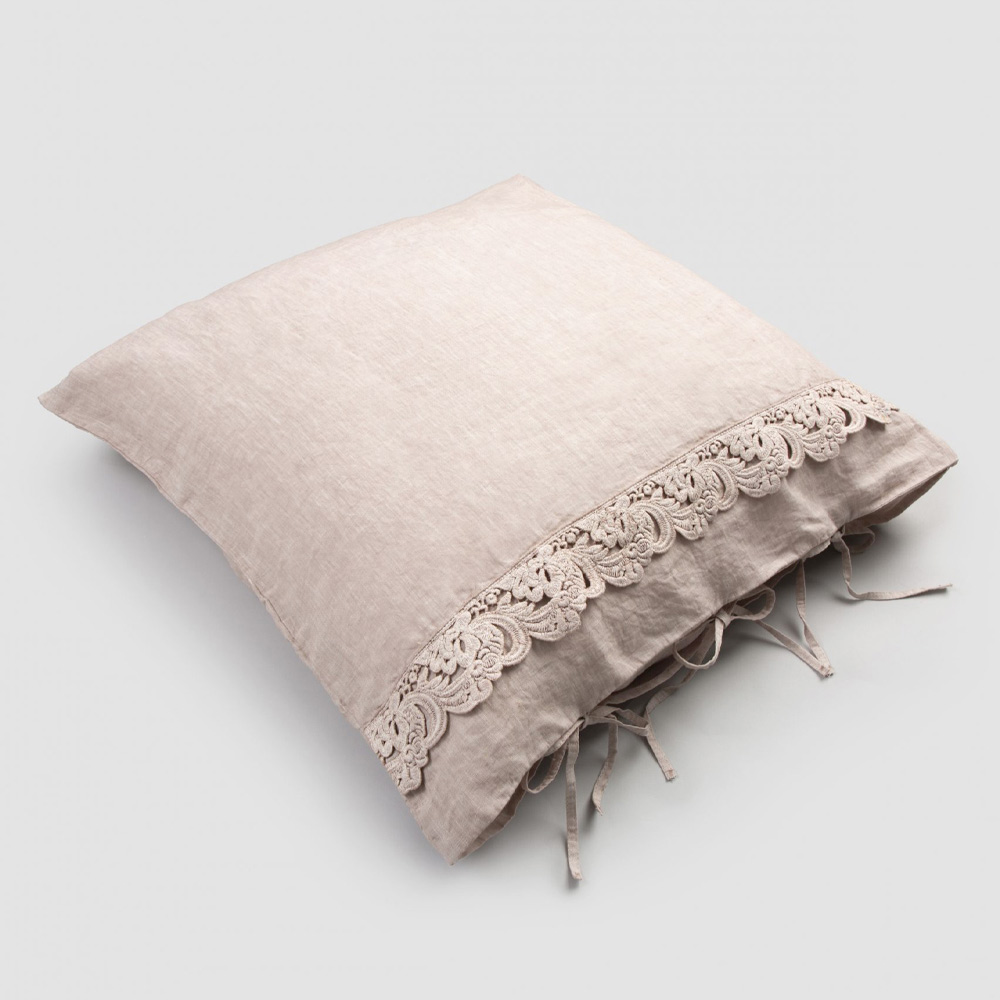 Funda de almohada cuadrada de lino puro con encaje de armonía y botones con cordones, 2 colores made in Italy.